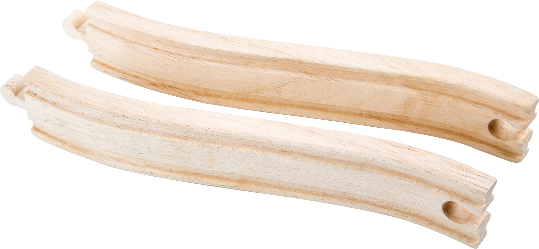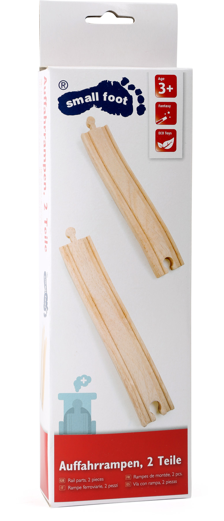 Wer hoch hinaus will, fängt mit diesen Auffahrrampen an! Die beiden Holzrampen sind leicht gebogen und ermöglichen somit eine Streckenführung in geringe Höhe. Die Rampen passen zu allen handelsüblichen Holzeisenbahnen und sind eine tolle Ergänzung für abwechslungsreiche Schienennetze durchs Kinderzimmer!