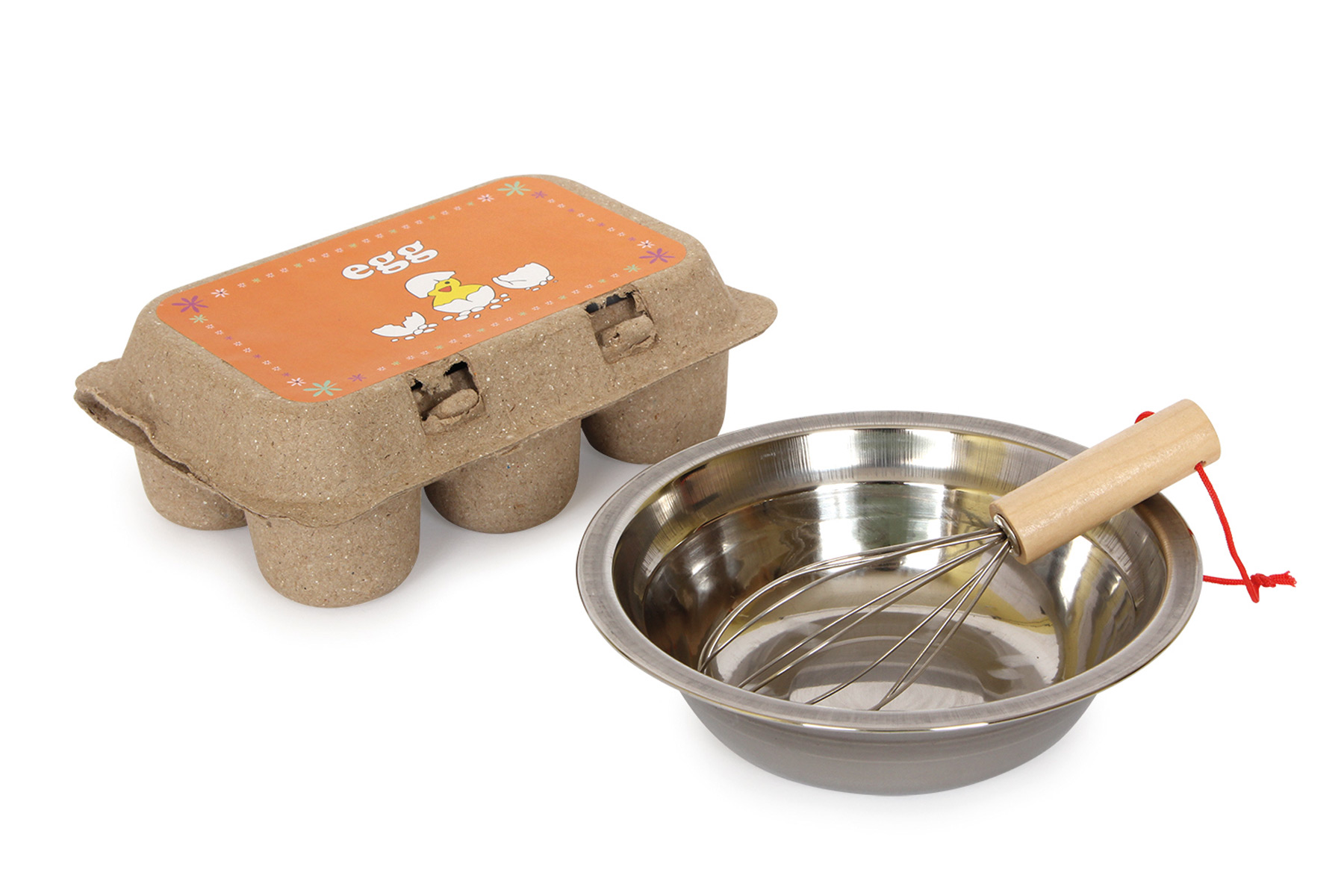 Der Hit in der Kinderküche kommt in diesem Eierkarton daher. Von den sechs Holzeiern sind drei so gearbeitet, dass Eigelb und Eiweiß wie bei einem gekochten Ei getrennt werden! Metallschale (Ø ca. 12 cm) und Schneebesen mit Holzgriff runden das Set ab. Der Hit in der Kinderküche kommt in diesem Eierkarton daher. Von den sechs Holzeiern sind drei so gearbeitet, dass Eigelb und Eiweiß wie bei einem gekochten Ei getrennt werden! Metallschale (Ø ca. 12 cm) und Schneebesen mit Holzgriff runden das Set ab.
