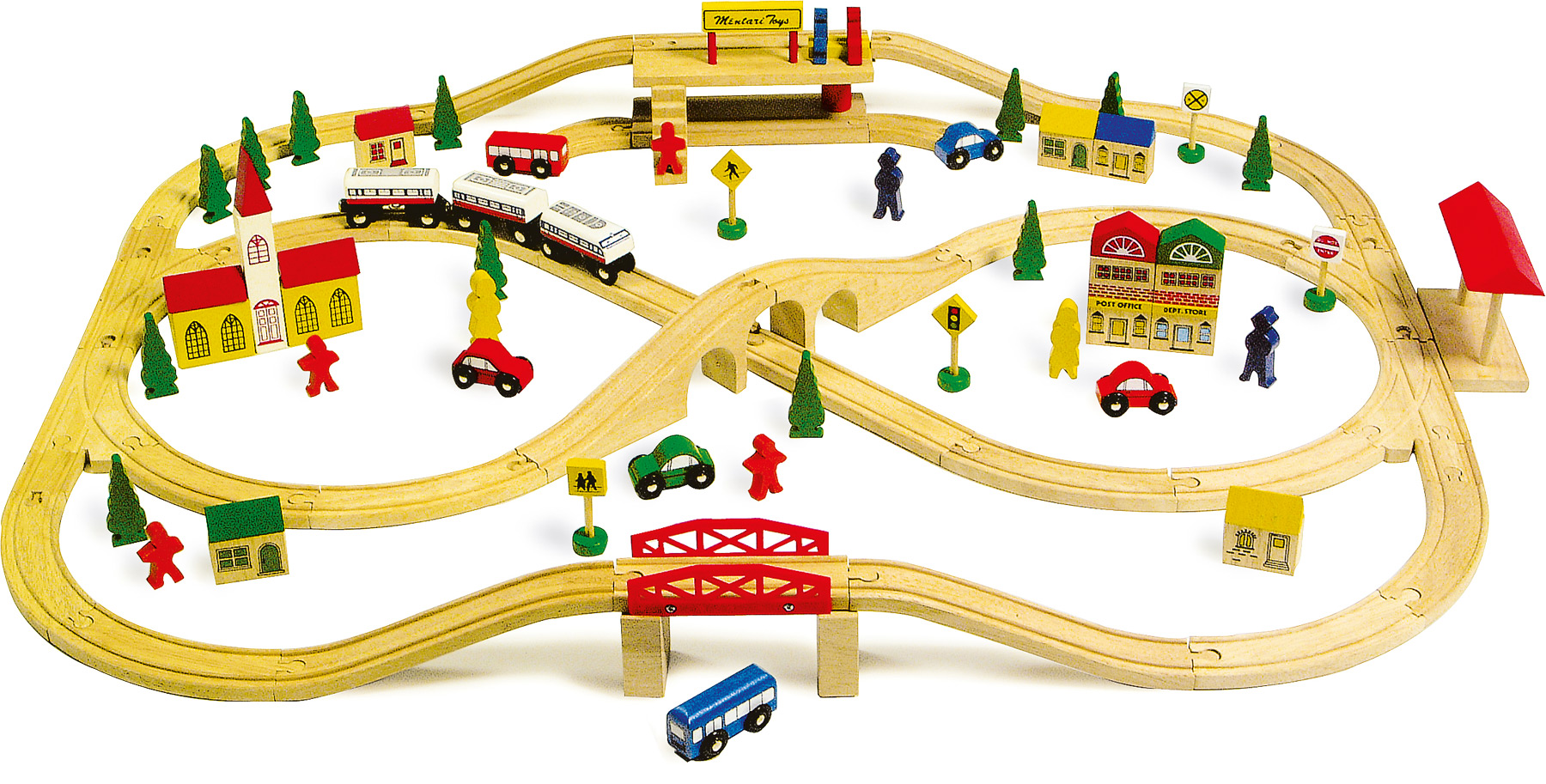 Reichhaltiges Zubehör. Schienen mit anderen Bahnen kombinierbar.