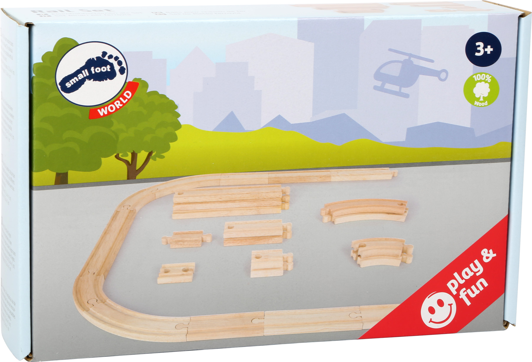 Als Erweiterung des Schienennetzes im Kinderzimmer ist dieses 24-teilige Set genau richtig. Mit diesen Schienen lässt sich auch eine ganze Eisenbahnrunde bauen. Sie lassen sich mit allen handelsüblichen Eisenbahnen kombinieren.