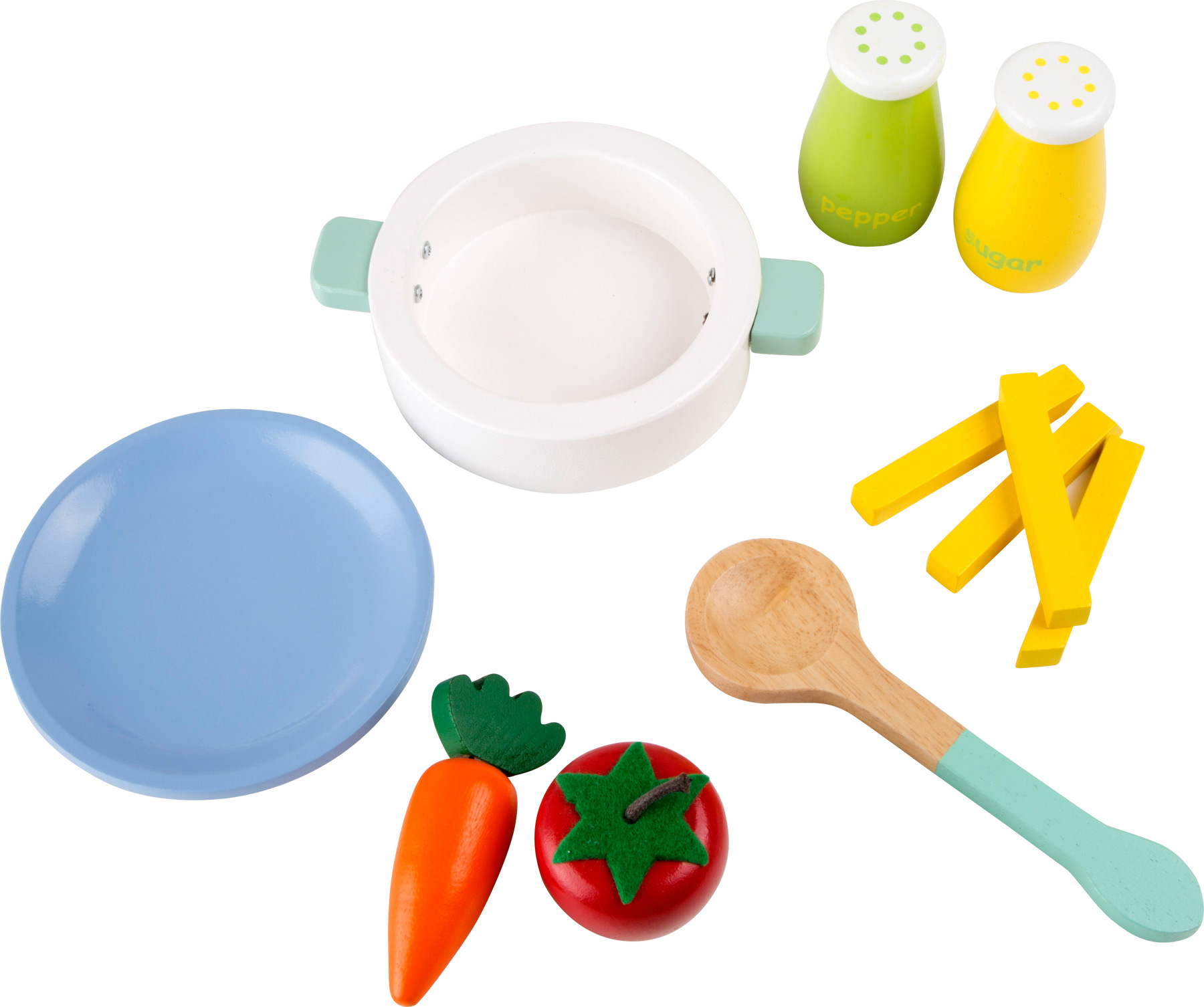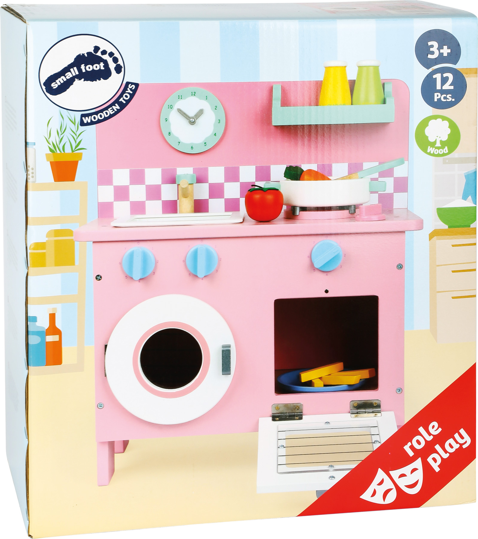 In pastelligen Farbtöne gehalten, bietet diese niedliche Kinderküche angehenden Köchen viel Platz zum Kochen. Da die Küche sehr kompakt ist, kann sie auch problemlos im Auto zu Oma und Opa transportiert werden. Die Küche besteht aus einem elfteiligen Zubehör und lässt keine Wünsche offen. Eine zauberhafte Küche, in sanften Farbtönen lackiert, bietet kleinen Köchinnen auch auf kleinem Raum einen Platz für großes Spielen! Klickgeräusche an den Drehknöpfen sorgen für realistisches Spielvergnügen und mit dem 11-tlg. Zubehör aus bunt lackiertem Holz werden die Puppenmuttis tolle Menüs für ihre Kleinen zaubern. Die kompakte Küche kann auch gut mit zu Oma und Opa oder in die Ferienwohnung genommen werden!
