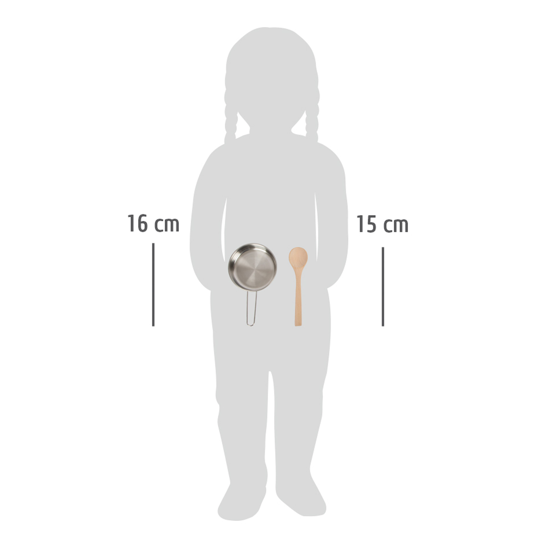Mit diesem Küchen- und Kochset wirbeln kleine Gourmets in der Spielküche wie die Profis! Mit Topf inkl. Deckel, Pfanne, Schneebesen, Pfannenwender und Kochlöffel aus Holz sowie Kinderschürze, Topflappen und wattiertem Kochhandschuh bleiben in der Kinderküche keine Wünsche offen. Praktisch: Die Schürze verfügt über eine große Bauchtasche, in der die Kochutensilien Platz finden - so haben Kinder beim Spielen in der Küche die Hände frei! Das ideale Zubehör für die Spielküche. Beim Nachspielen von Alltagssituationen werden Kreativität und soziale Kompetenzen spielerisch gefördert.