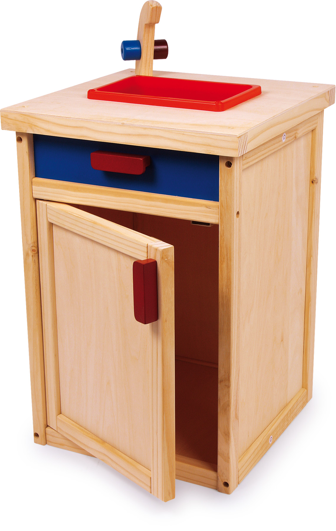 Inkl. Spülwanne aus Plastik, Tür mit Magnet. Nach dem Kochen und Essen gleich wieder „Klarschiff“ machen für das nächste große Festessen im Kinderland!