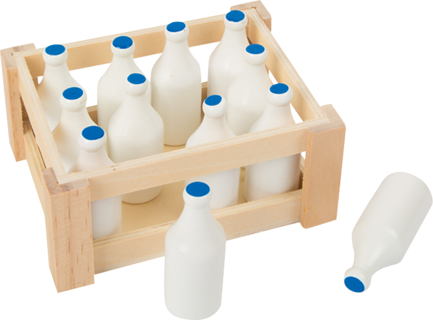 Bei dieser Milchkiste greifen alle Milchliebhaber zu. Im Tante-Emma-Laden macht diese Kiste eine gute Figur. Die robusten Holzflaschen sind eine tolle Bereicherung im Verkaufsregal.