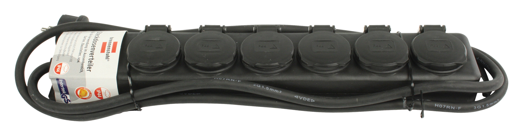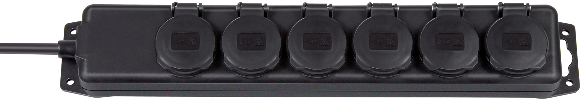 Outdoor-Steckdosenleiste IP44, 6-fach (schwarz, 2 Meter)