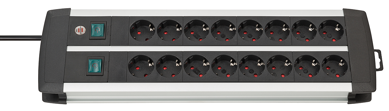Premium-Alu-Line Steckdosenleiste 16-fach Duo (schwarz/silber, 3 Meter, mit 2 Sicherheitsschaltern)