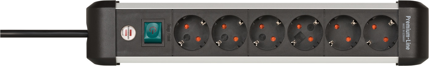 Premium-Alu-Line Steckdosenleiste 6-fach (schwarz/silber, 3 Meter, mit Sicherheitsschalter)