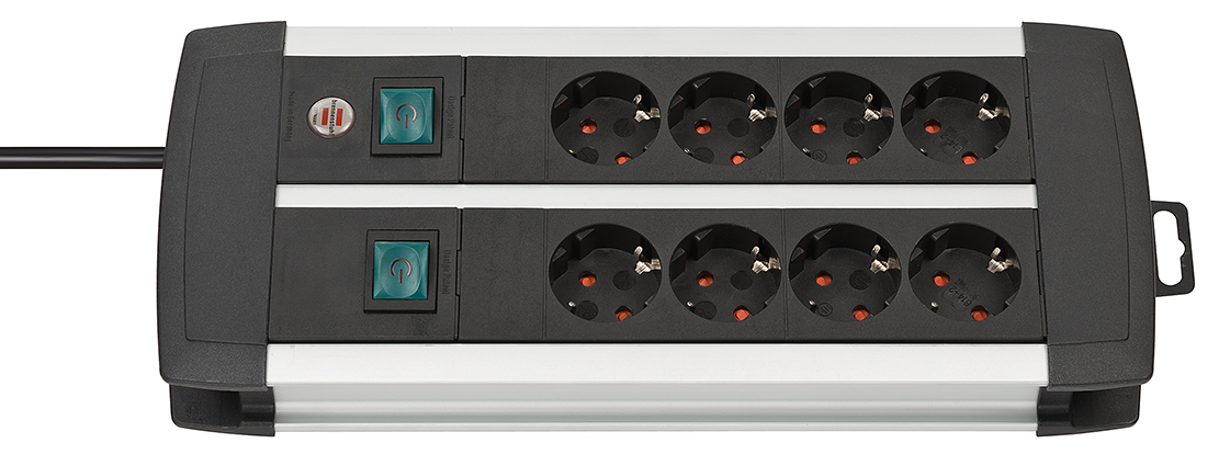Premium-Alu-Line Steckdosenleiste 8-fach Duo (schwarz/silber, 3 Meter, mit 2 Sicherheitsschaltern)