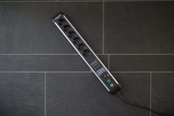 Premium-Protect-Line Steckdosenleiste 6-fach (schwarz/aluminium, 5 Meter, 60.000A Überspannungsschutz)