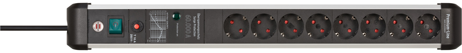 Premium-Protect-Line Steckdosenleiste 8-fach (schwarz/aluminium, 3 Meter, 60.000A Überspannungsschutz)
