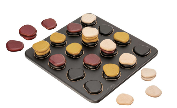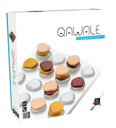 Wer von euch lässt seine Kieselsteine geschickter springen?Elegant und taktisch zugleich, findet Qawale seine Inspiration in Kieselsteinhaufen, die man entlang der Wege findet. Beide Spieler erhalten acht Steine je einer Farbe. Die dritte Farbe ist neutral. Wer an der Reihe ist, legt einen Stein auf einen Stapel seiner Wahl und verschiebt ihn. Beim Verschieben eines Stapels müsst ihr auf jedem überquerten Feld einen Stein liegen lassen. Wer als Erstes vier Kieselsteine der eigenen Farbe von oben betrachtet auf dem Brett aneinanderreiht, gewinnt dieses Spiel, das durch eine grandiose Haptik des Materials besticht.