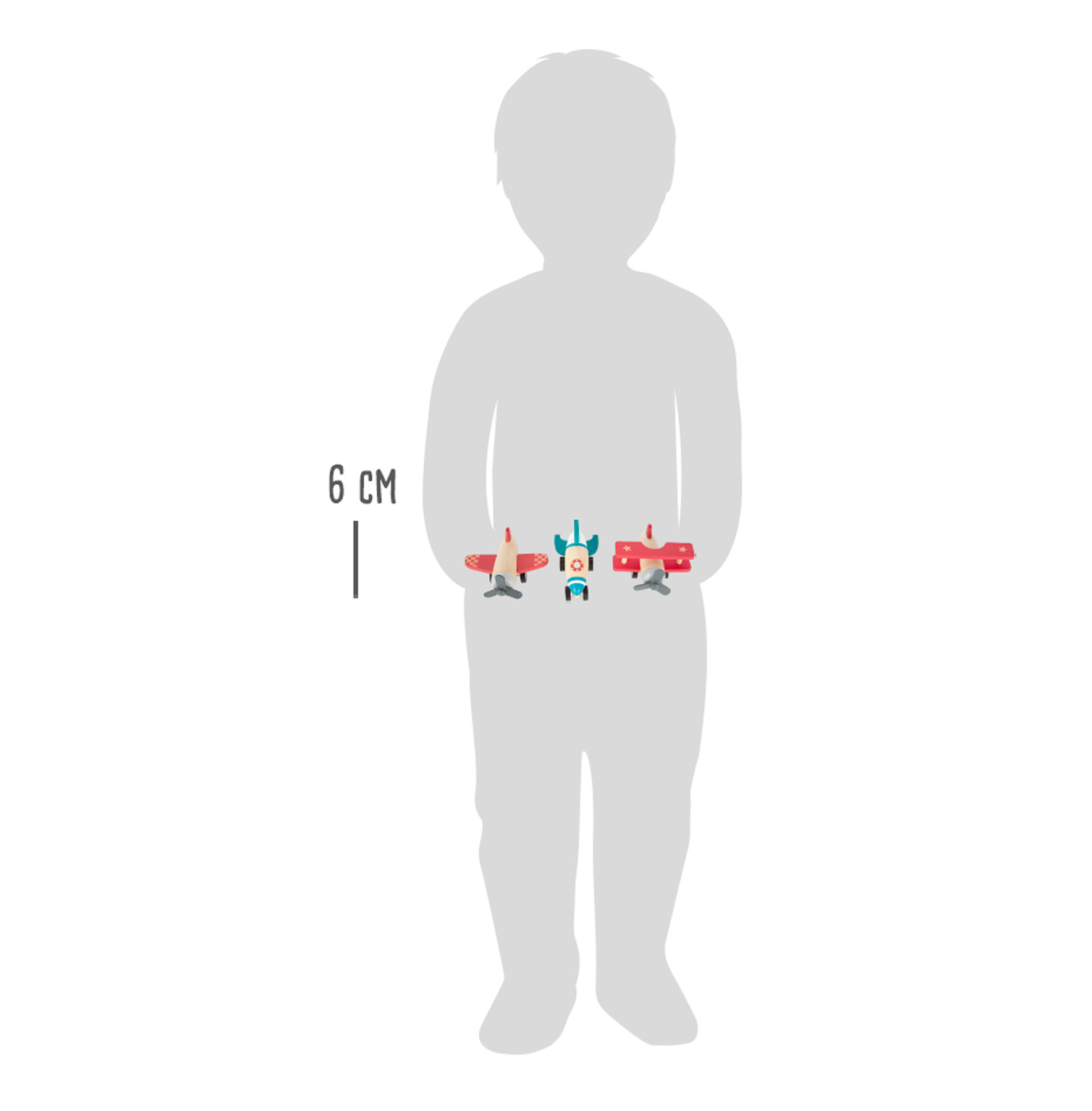 Wenn diese drei tollen Flieger aus robustem Holz im Kinderzimmer durchstarten, ist Spielspaß garantiert. Für Action und den nötigen Speed von Flugzeug, Doppeldecker und Rakete sorgt der Rückziehmechanismus. Alle Piloten ins Cockpit! Das ideale Geschenk für kleine Flugzeug-Liebhaber! Wer hebt als erstes ab?