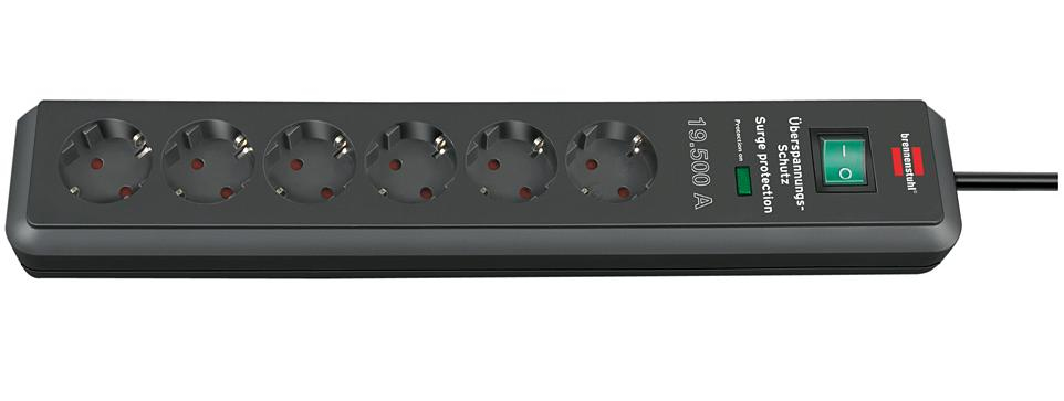 - Mehrfachsteckdose 6-fach schützt wertvolle Geräte vor Überspannungen mit einem max. Ableitstrom bis zu 19.500 A (Schutz bei Gewitter, Blitzschlag, etc.)