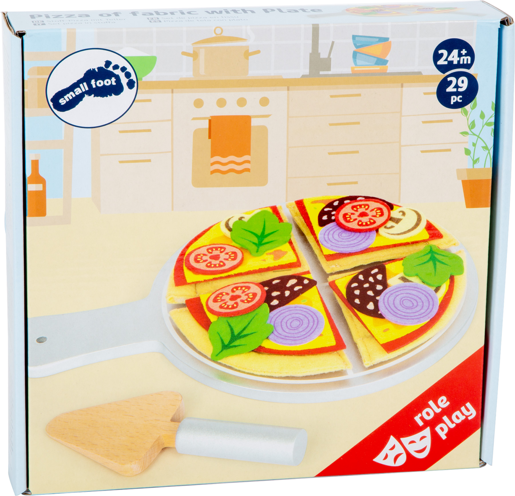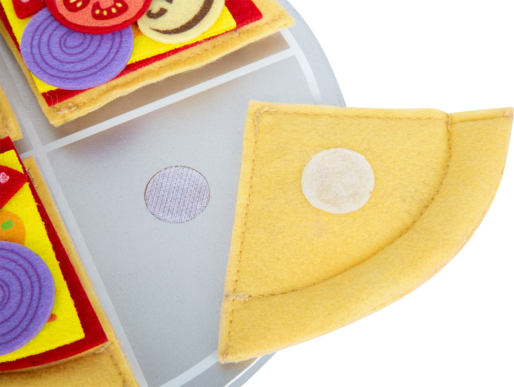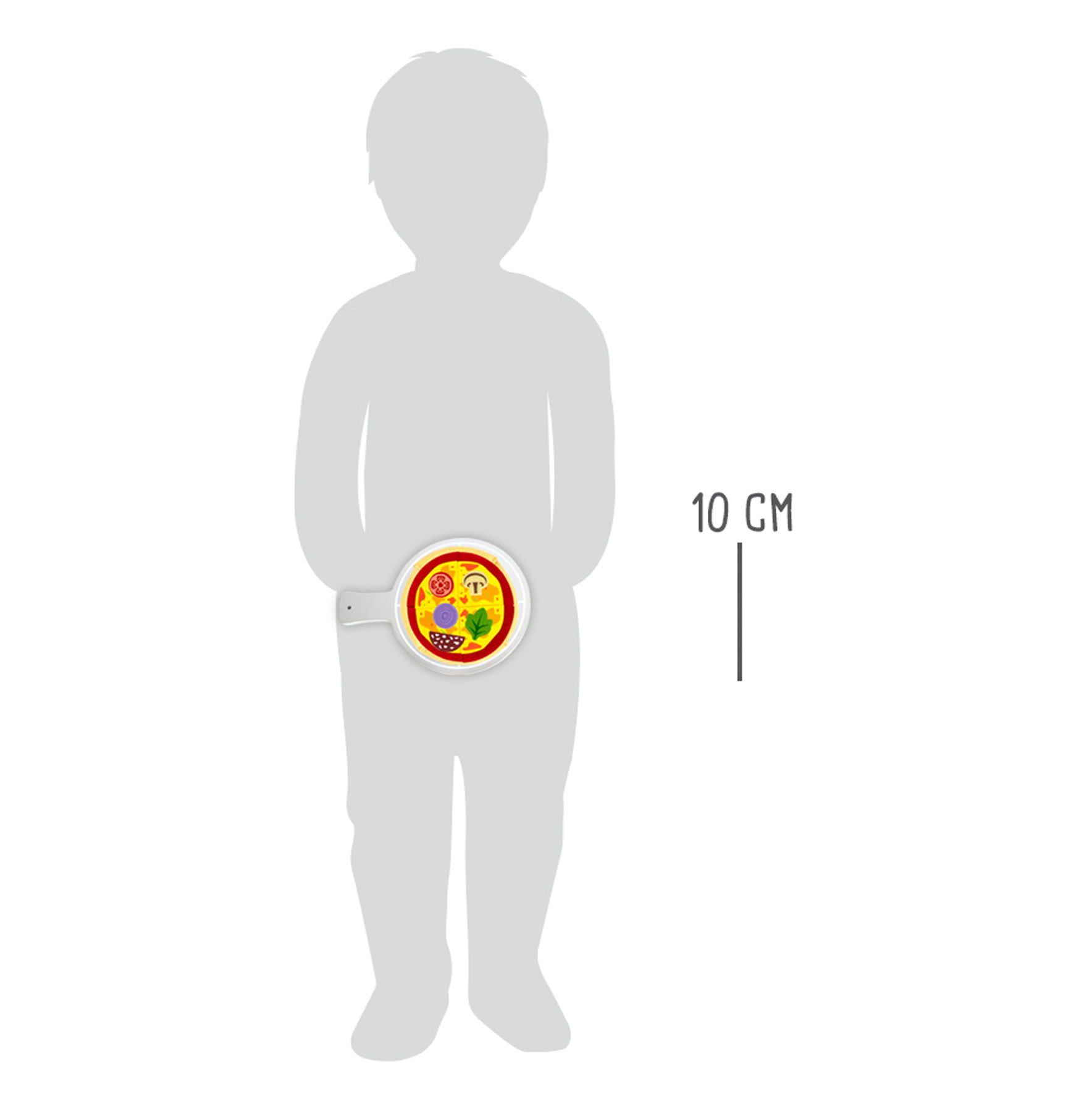 Buon appetito! Mit diesem Pizza-Set samt Pizzateller und Pizzaheber aus Holz können in der Kinderküche so leckere Pizzen entstehen, wie beim Italiener um die Ecke. Ob mit Tomaten, Salat, Pilzen, Zwiebeln oder nur mit Käse belegt – kleine Pizzabäcker haben beim Belegen des weichen Pizzabodens die freie Auswahl beim Filz-Belag! Dank Klettverbindungen an Pizzaboden und Pizzabrett kann die Pizza auf dem Weg in den Ofen nicht herunterfallen. Ein praktischer Zusatznutzen: Mit den Pizzavierteln und der aufgedruckten Einteilung auf dem Teller können Kinder auch erste Erfahrungen mit Brüchen und Bruchrechnung machen.
