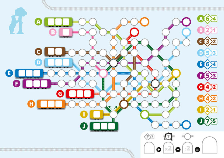 Berlin, Madrid, Amsterdam oder Paris – Es geht kreuz und quer mit der U-Bahn durch die City. Wähle die richtige Linie und plane die besten Umsteigemöglichkeiten. Setze deine Kreuze clever, sei schneller als deine Mitspieler und markiere als Erster die siegpunktreichen Endstationen. Aber Vorsicht! Stoppt dein Zug vorzeitig, bleibst du schnell auf der Strecke. Vier unterschiedliche Pläne bringen Abwechslung ins Spiel und Spaß auf ganzer Linie. Aber für alle gilt: Nur wer geschickt seine Züge vorbereit, hat sich am Ende nicht voll verplant.