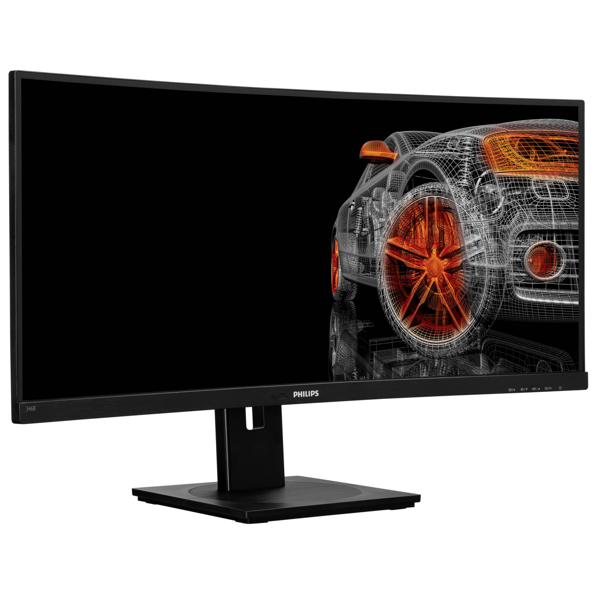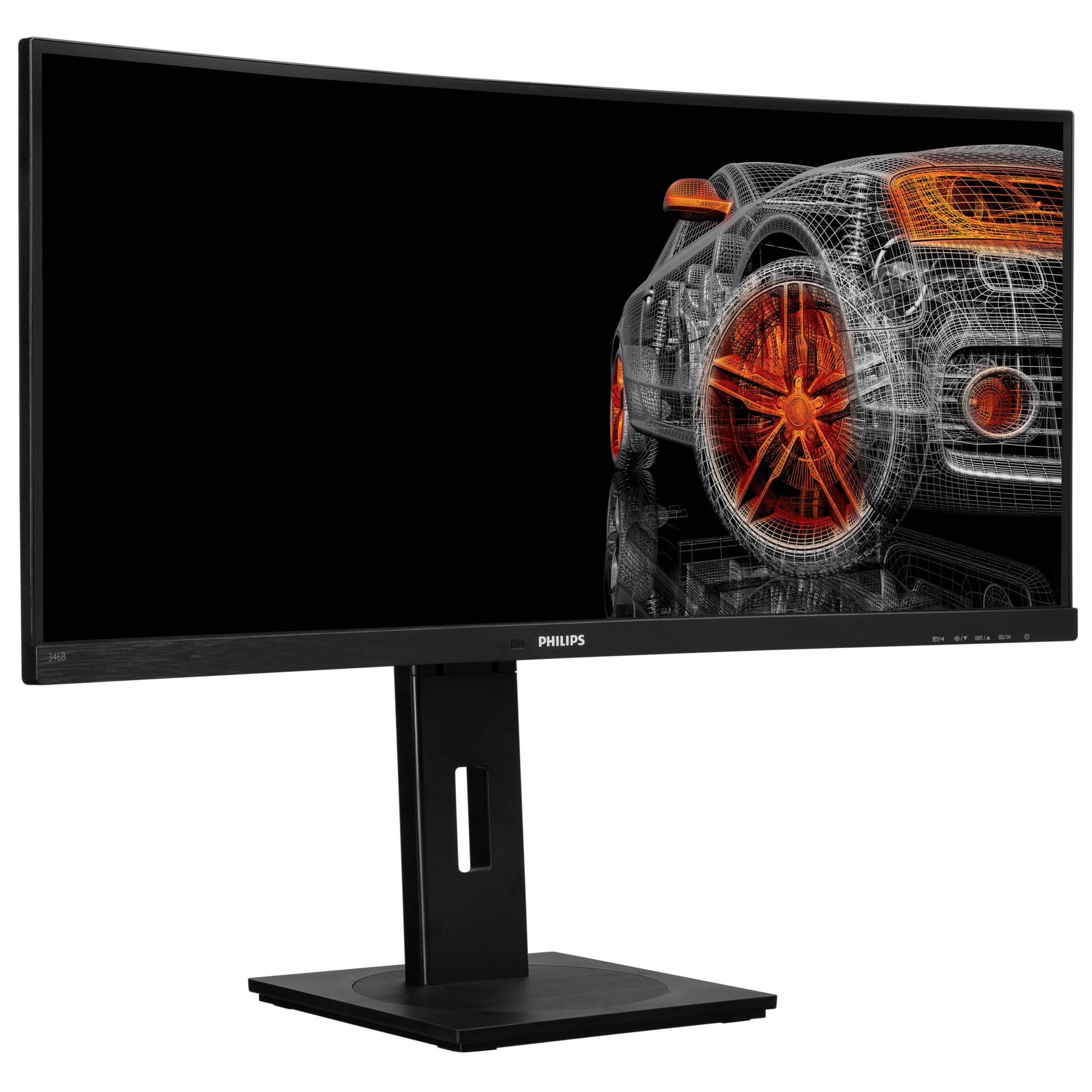 Der 86 cm (34") große Philips B-Line Curved UltraWide Monitor bietet einen Rundumblick auf Ihre Arbeit. All-in-One-USB-C und das ergonomische Design des Standfußes sorgen für optimale Arbeitsbedingungen.