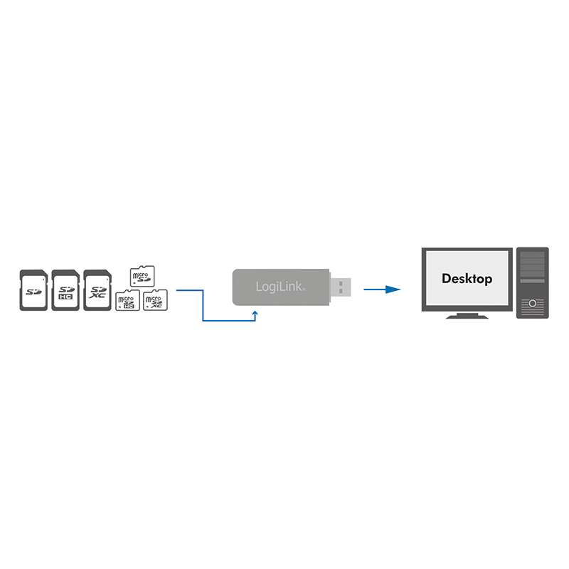 Kompakter USB 3.0 Kartenleser zum Lesen und Schreiben von SD/SDHC, MicroSD/SDHC, sowie SDXC und MicroSDXC Karten. Der Anschluss erfolgt am USB 3.0 Port und ist abwärtskompatibel zu USB 2.0 und USB 1.1.