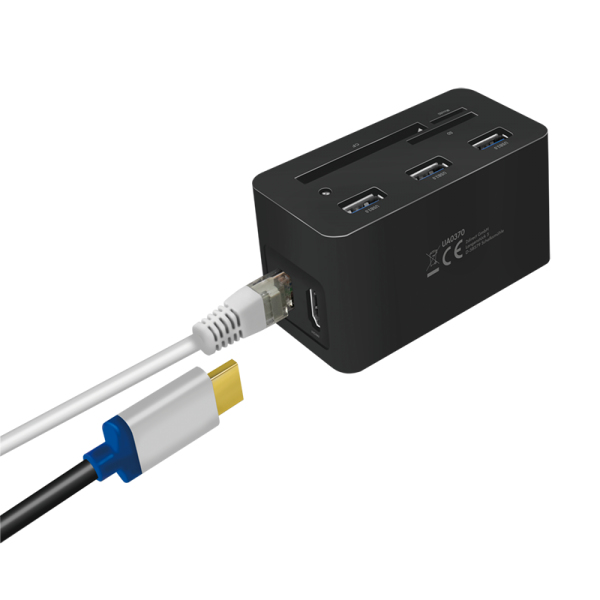 USB 3.2 (Gen 1) Docking Station, 10-Port, w/PD, mini, blackDas UA0370 von LogiLink verbindet einen USB-C-fähigen Computer mit bis zu 10 Peripherieanschlüssen über ein einziges Kabel. Der besondere USB-C-PD-Anschluss sorgt dafür, dass Ihr Laptop aufgeladen wird, während gleichzeitig jedes externe Gerät mit Strom versorgt wird. Dabei ist eine stabile und schnelle Netzwerkübertragung über den RJ45-Gigabit-Ethernet-Netzwerkanschluss gewährleistet. Genießen Sie außerdem Ultra HD-4K-Videos über HDMI bei einer Auflösung von bis zu 3840x2160 Pixeln.