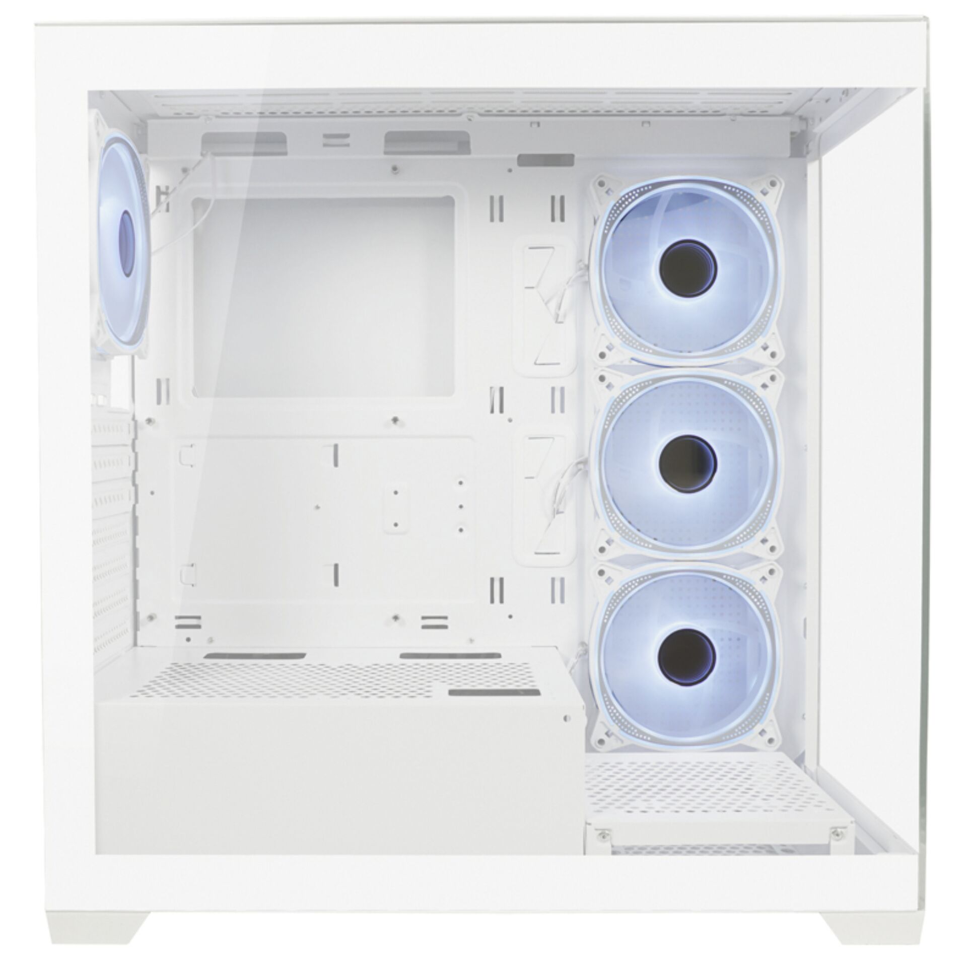 Mit bereits vier integrierten 120 mm-ARGB-Gehäuselüftern, wird ein besonderer Blickfang geboten. Die gewünschte Farbe kann ganz einfach am I/O-Panel oder durch die RGB-Mainboard-Software eingestellt werden. Wer etwas mehr Farbe in sein System bringen will, kann durch die leicht getönten Front- & Seitenscheiben aus Hartglas das Innere des PCs ästhetisch zum Vorschein bringen.