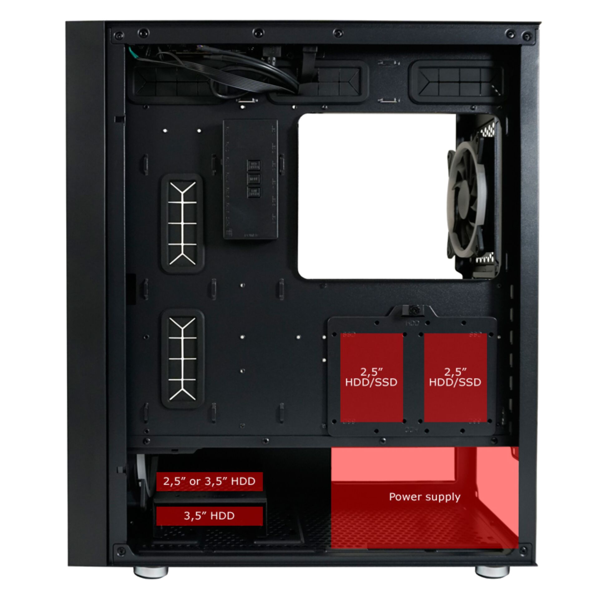 - Einbaumöglichkeiten: 3x 2,5" + 1x 3,5" / 2x 2,5" + 2x 3,5"