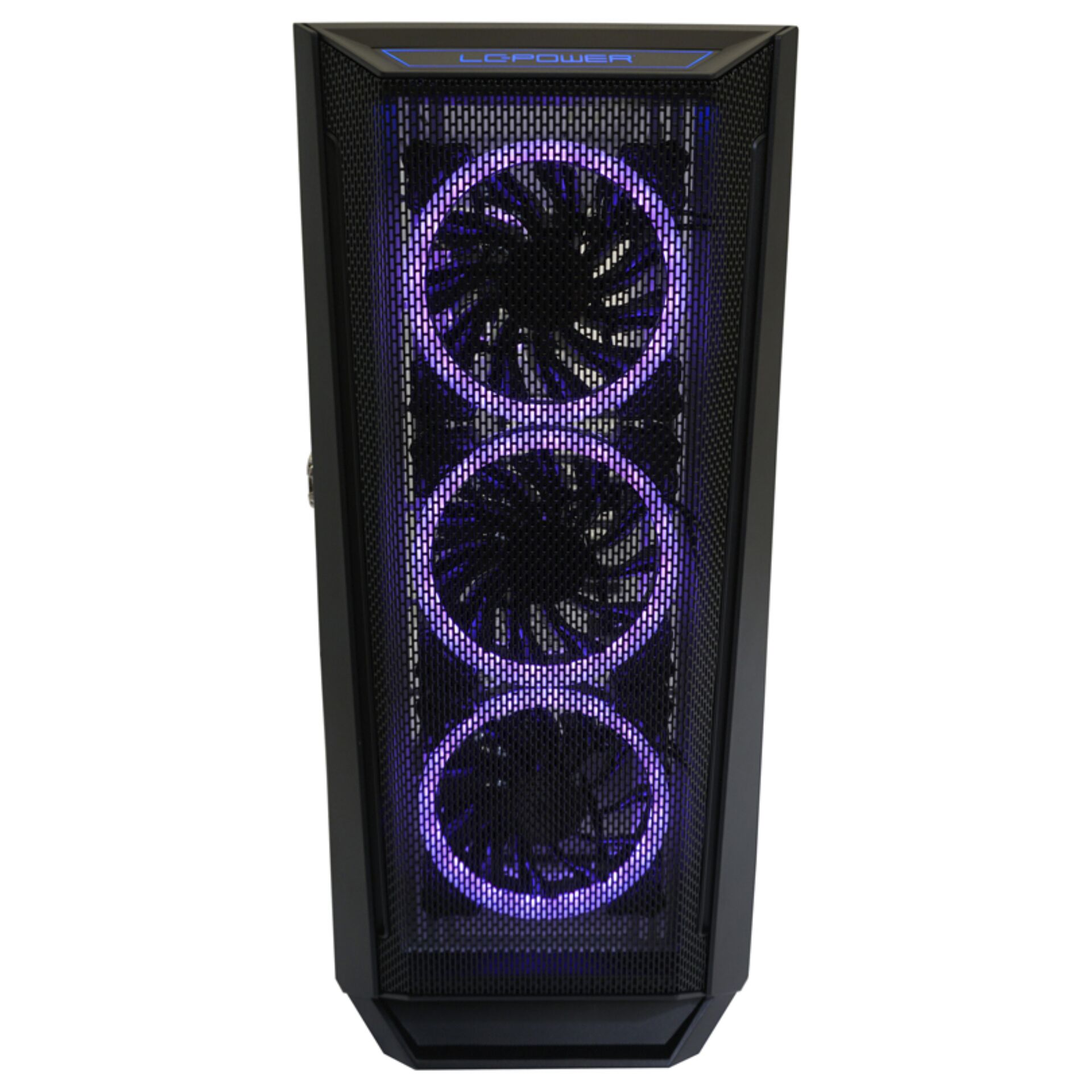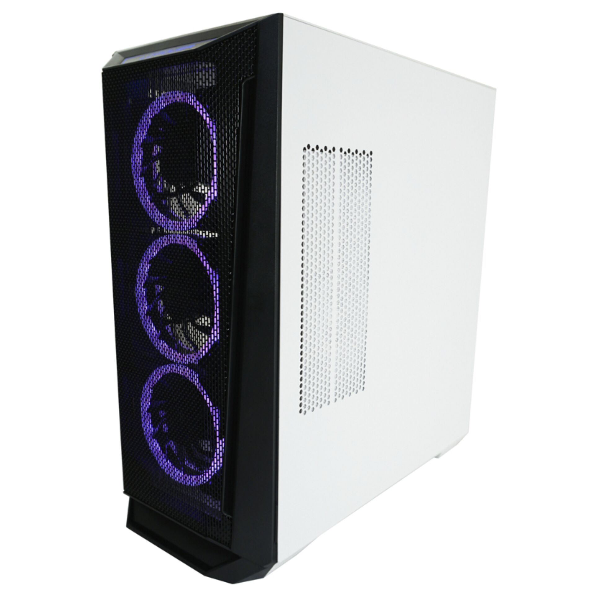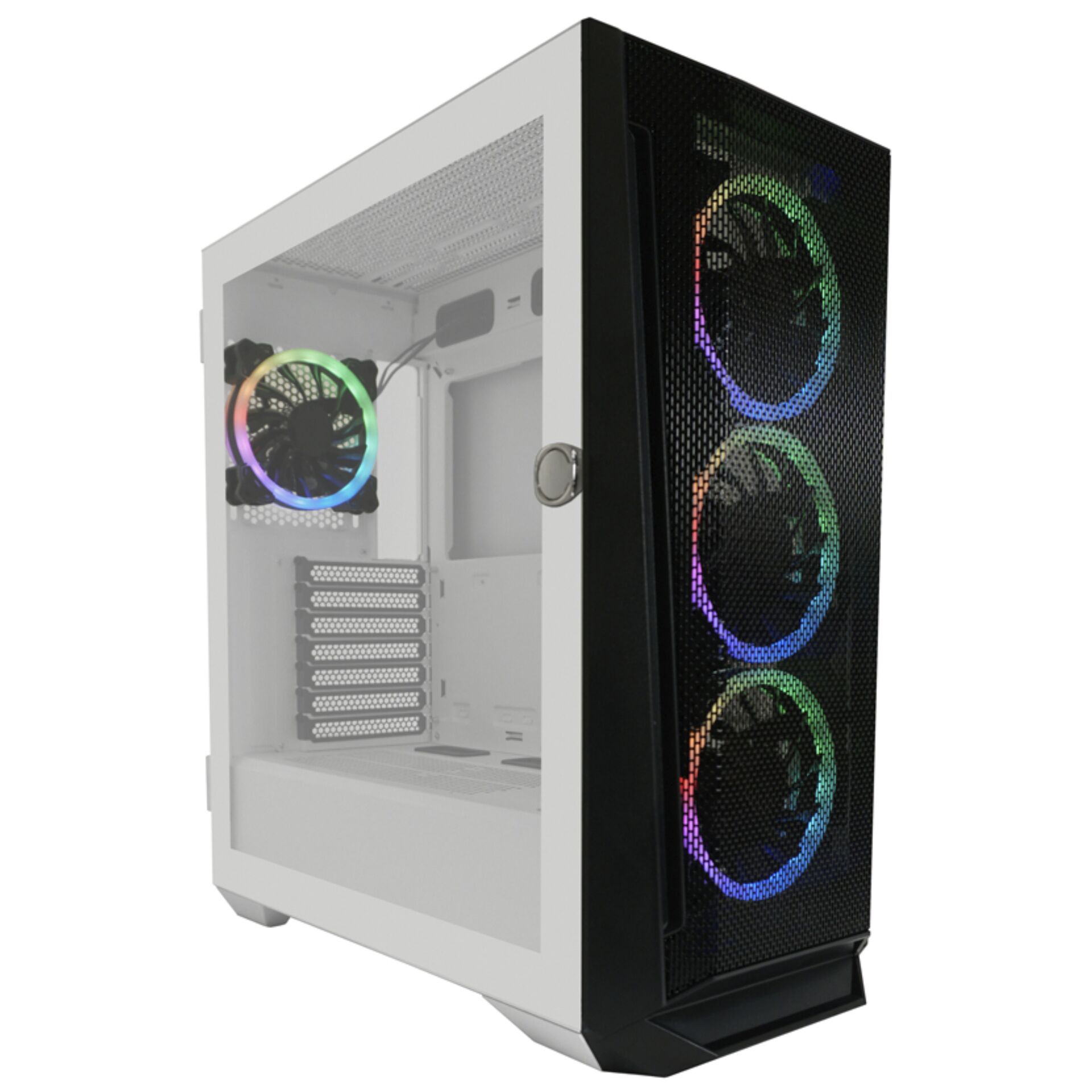 Mit dem schwarzen Mesh-Frontpanel sowie vier bereits integrierten 120 mm-ARGB-Gehäuselüftern, wird ab Werk ein besonderer Blickfang geboten. Die gewünschte Farbe kann ganz einfach per Fernbedienung, am I/O-Panel oder durch die RGB-Mainboard-Software eingestellt werden. Wer etwas mehr Farbe in sein System bringen will, kann durch die Seitenscheibe aus Hartglas das Innere des PCs ästhetisch zum Vorschein bringen.