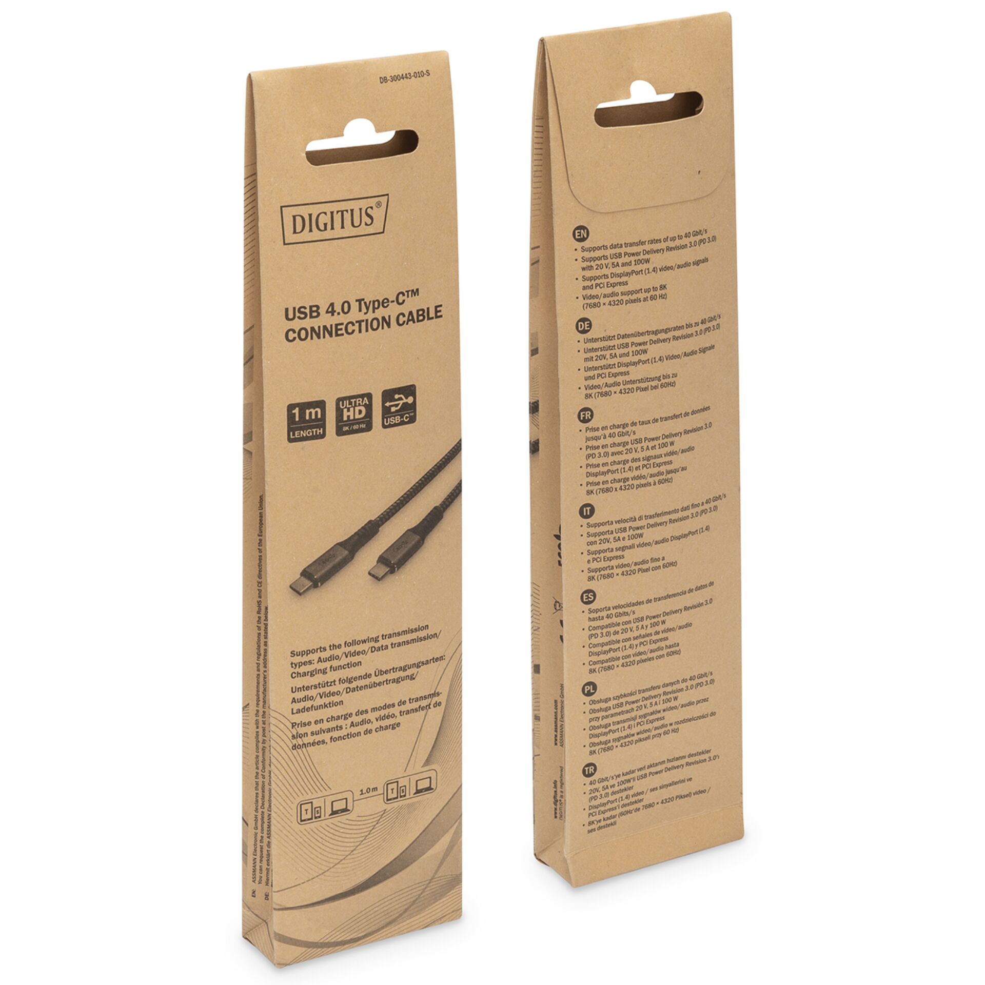 DIGITUS USB 4.0 Typ-C Kabel 1m AL-Geh. PP braid 8K/60Hz PD3.0