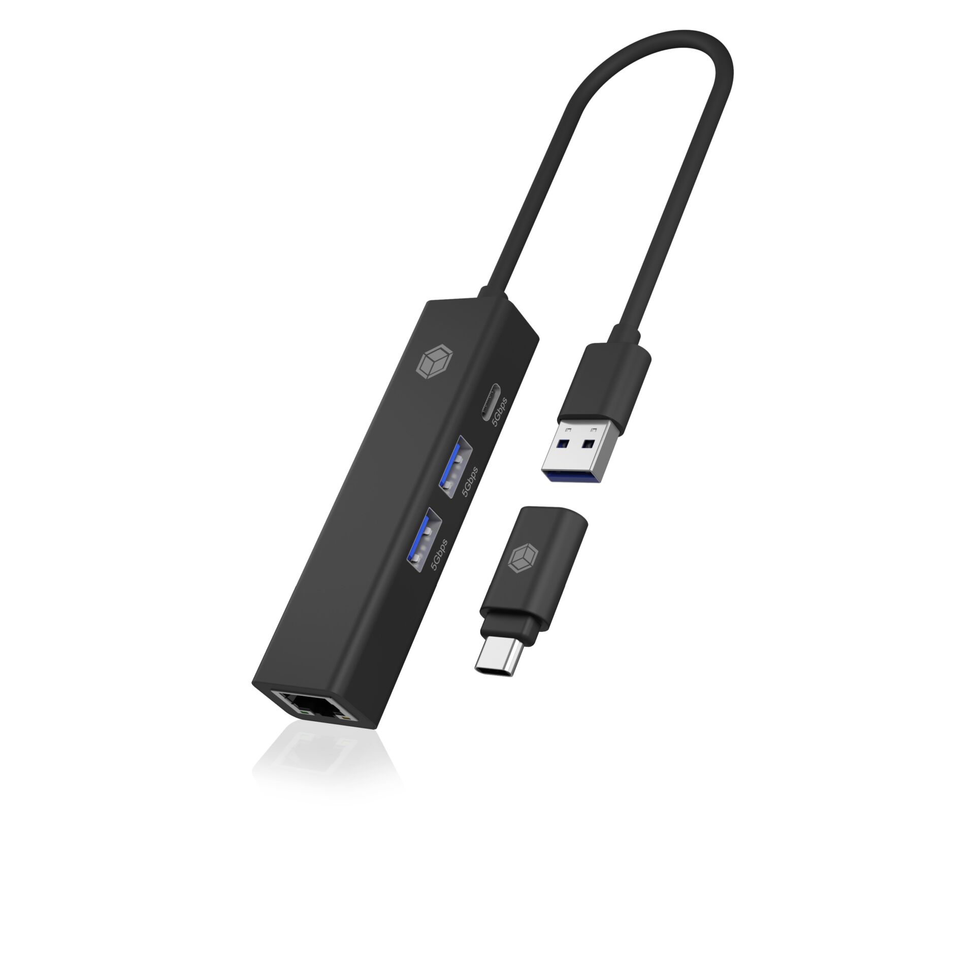 Raidsonic ICY BOX IB-HUB1439-LAN 4 Port Hub mit USB 3.2 Gen 1 Type-A oder Type-C Anschluss