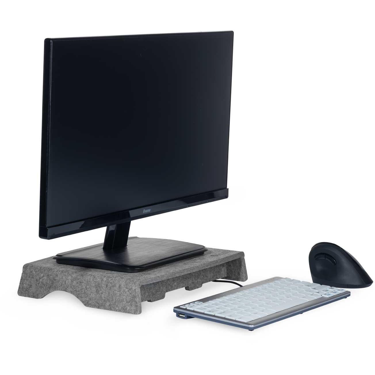 Darüber hinaus können Sie bei diesem Monitorständer Ihre kompakte Tastatur unter den Ständer schieben. Eine einfache und schnelle Möglichkeit, mehr Platz auf Ihrem Schreibtisch zu schaffen.