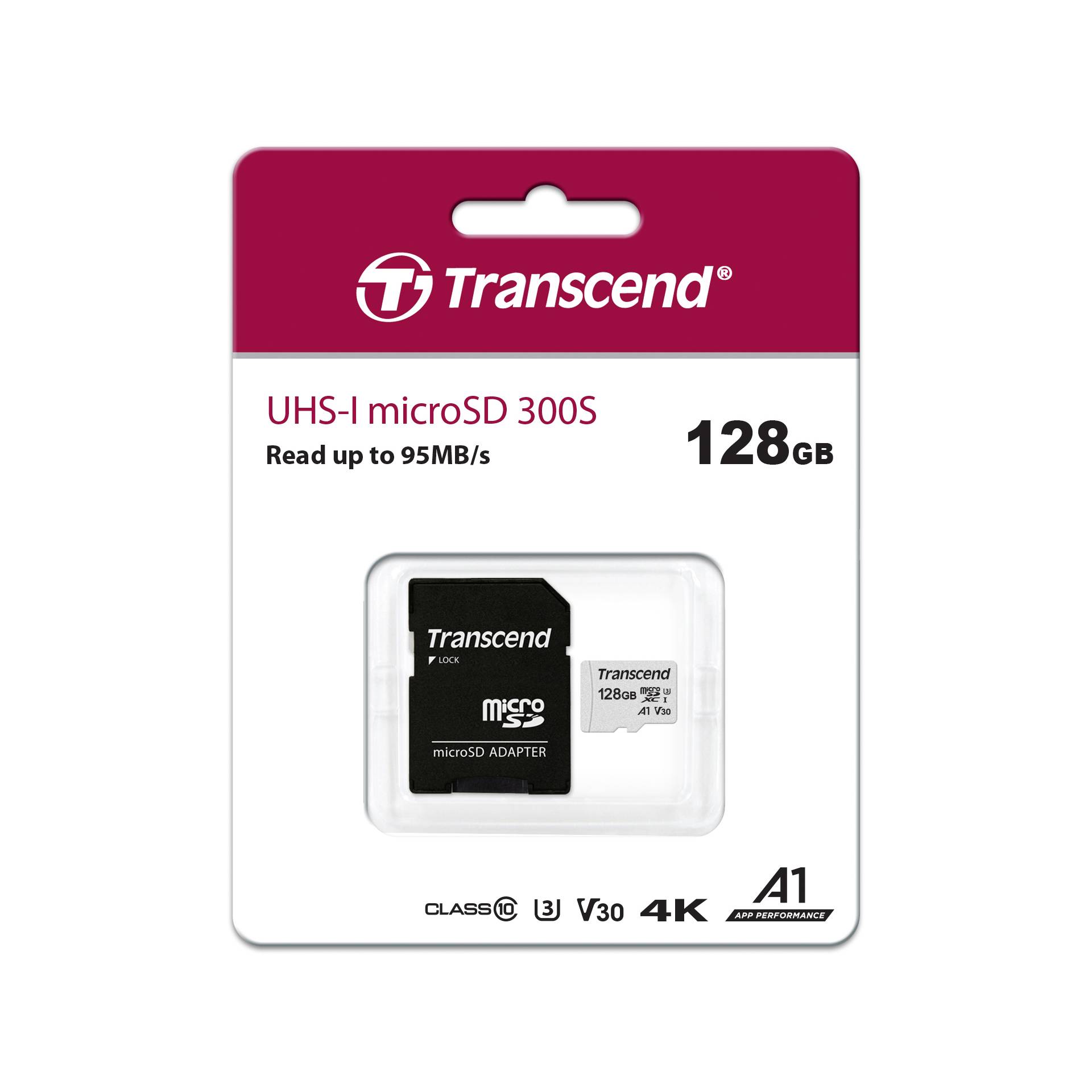 Transcend microSDXC 300S-A 128GB Class 10 UHS-I U3 V30 A1