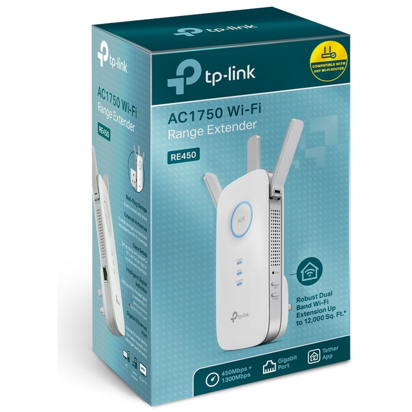 TP-Link RE450, Netzwerk-Repeater, 1300 Mbit/s, 10,100,1000 Mbit/s, Windows 10, Windows 2000, Windows 7, Windows 8, Windows 8.1, Windows 98SE, Windows NT, Windows XP, Extern, 10/100/1000Base-T(X)