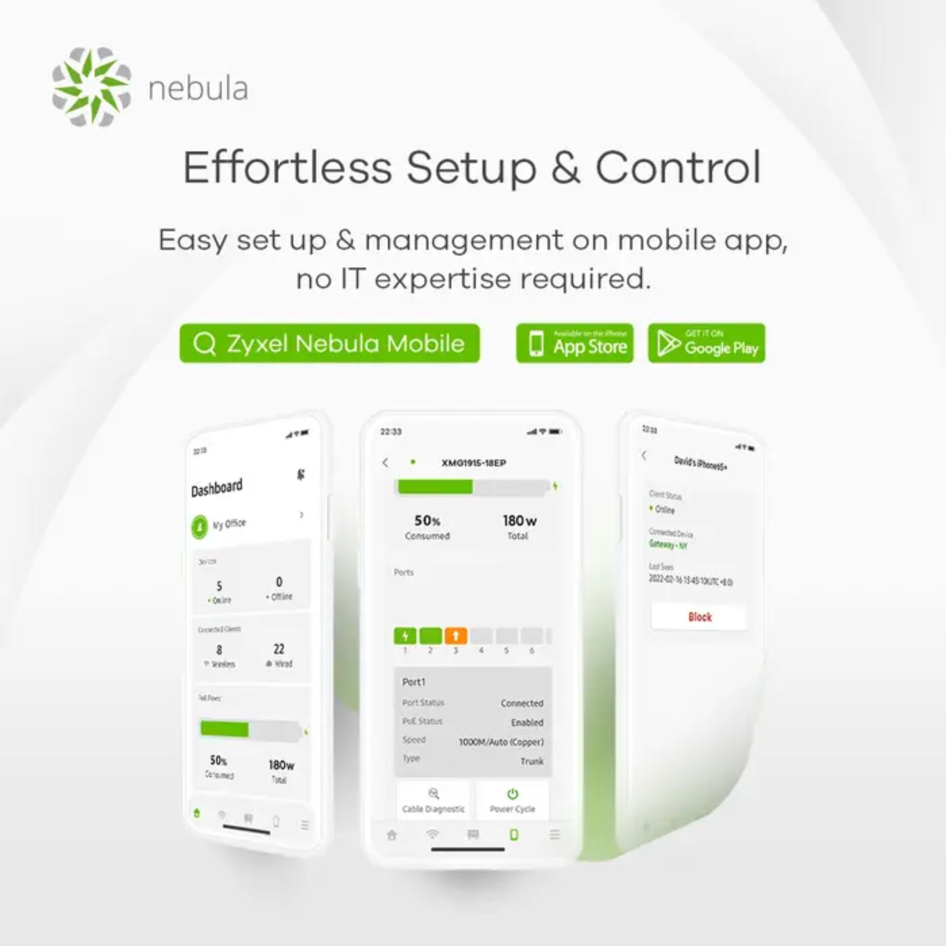 - Unterstützt Zyxel Nebula App (iOS und Android) für einfache Installation und lokale Verwaltung