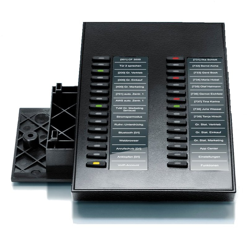 Beistellmodul für das COMfortel2600 und COMfortel3500 mit 30 weiteren, frei programmierbaren Funktionstasten.- Stabile mechanische Kopplung mit Spezialverbinder