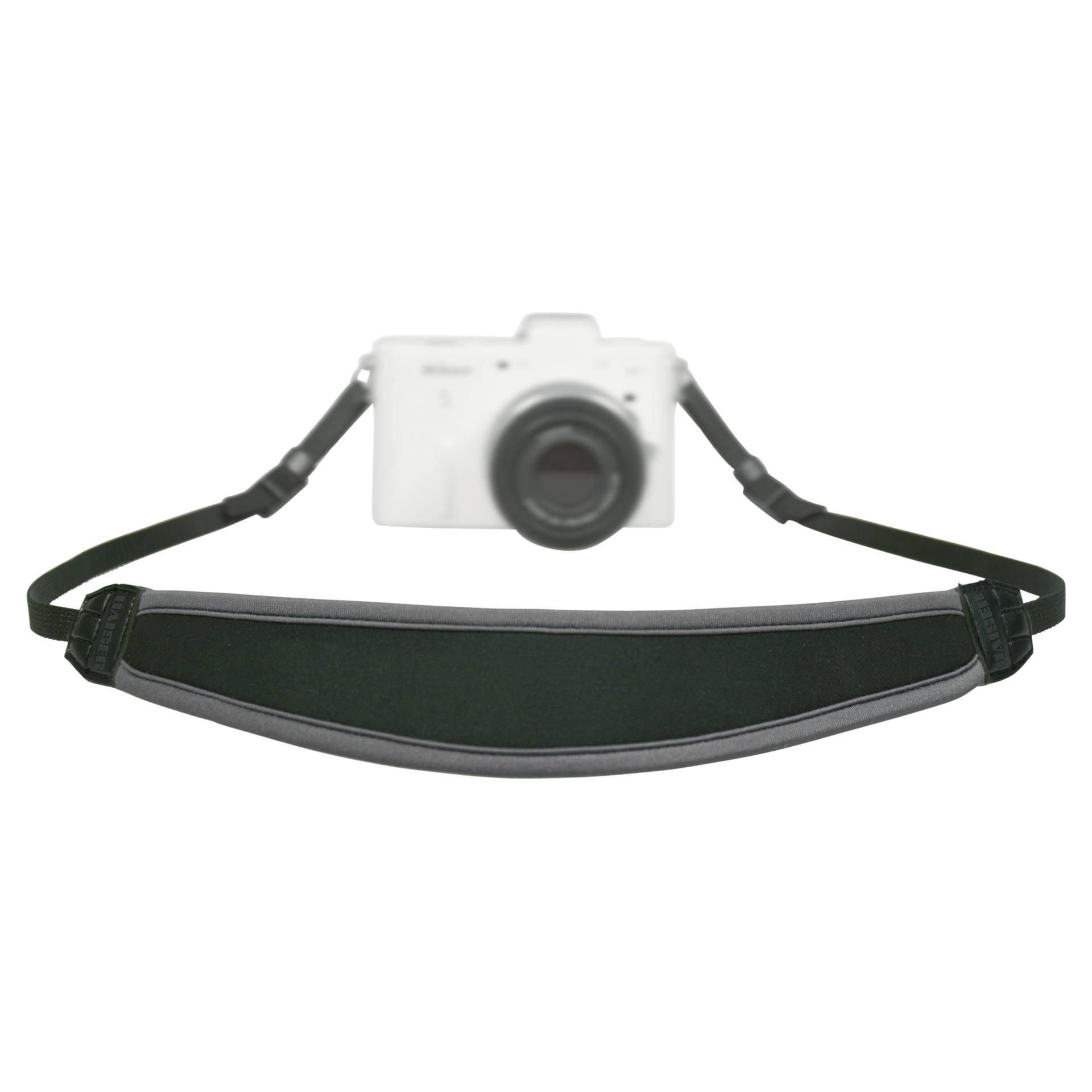 Bei Befestigung an Kompaktkameras lässt sich der Gurt über Schnellverschlüsse problemlos von der Kamera abnehmen.