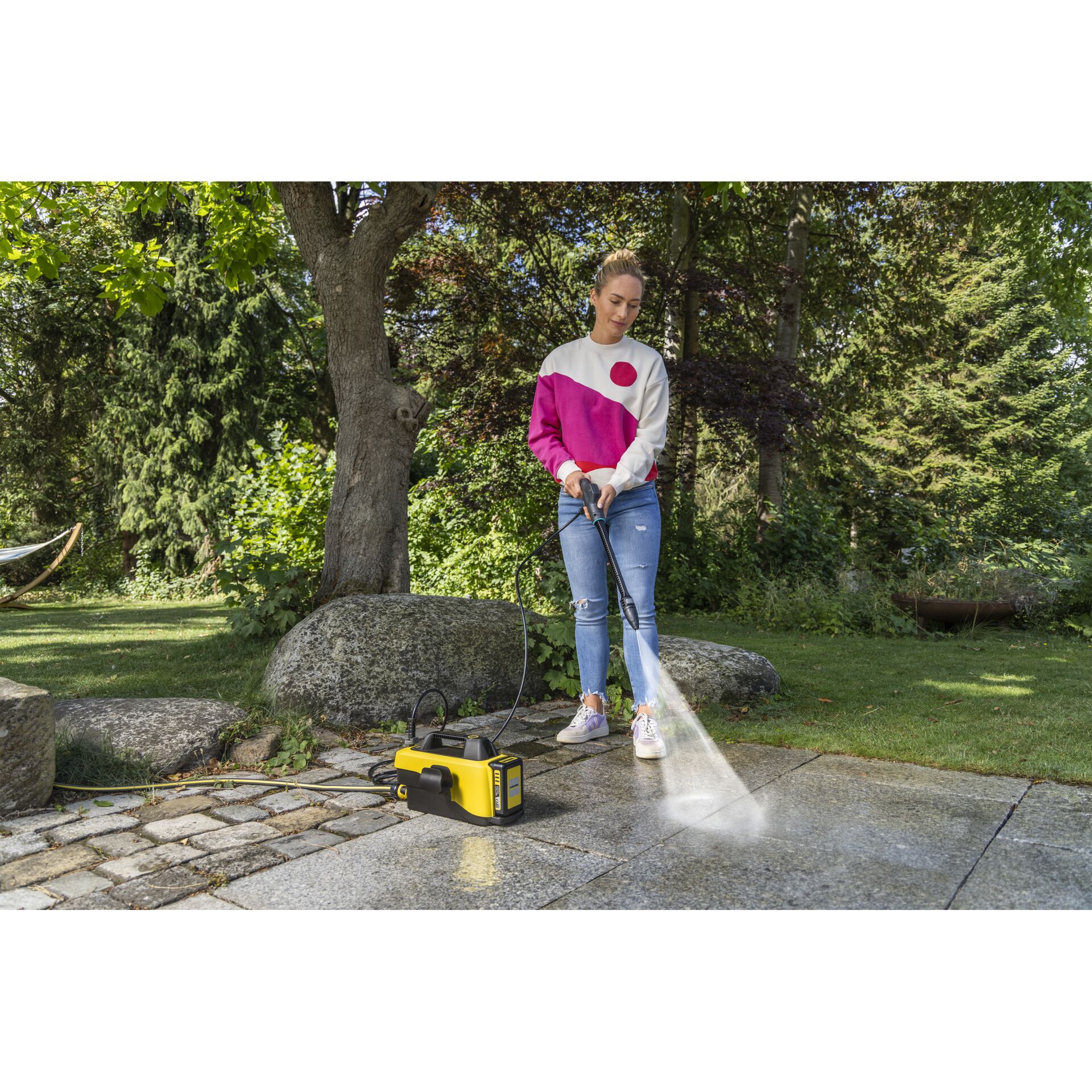 • Der leichte und kompakte Akku-Mitteldruckreiniger für die schnelle Zwischenreinigung ohne Stromanschluss. 18 Volt-Wechselakku, Ladegerät und Ansaugschlauch sind separat erhältlich.