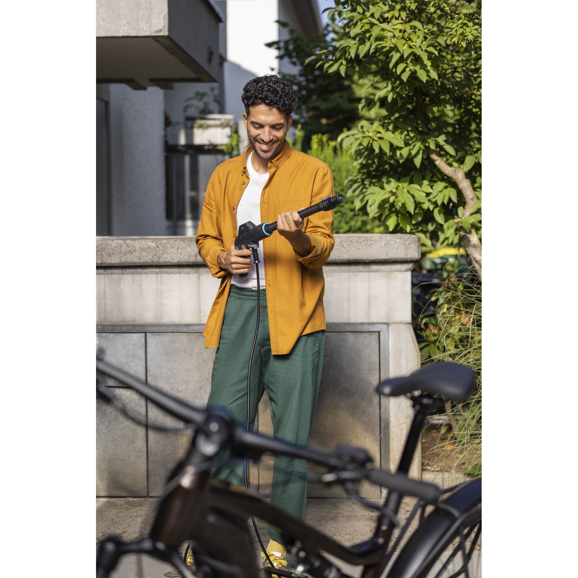 • Schlauch, Pistole und Strahlrohr lassen sich einfach, platzsparend und sicher am Gerät verstauen