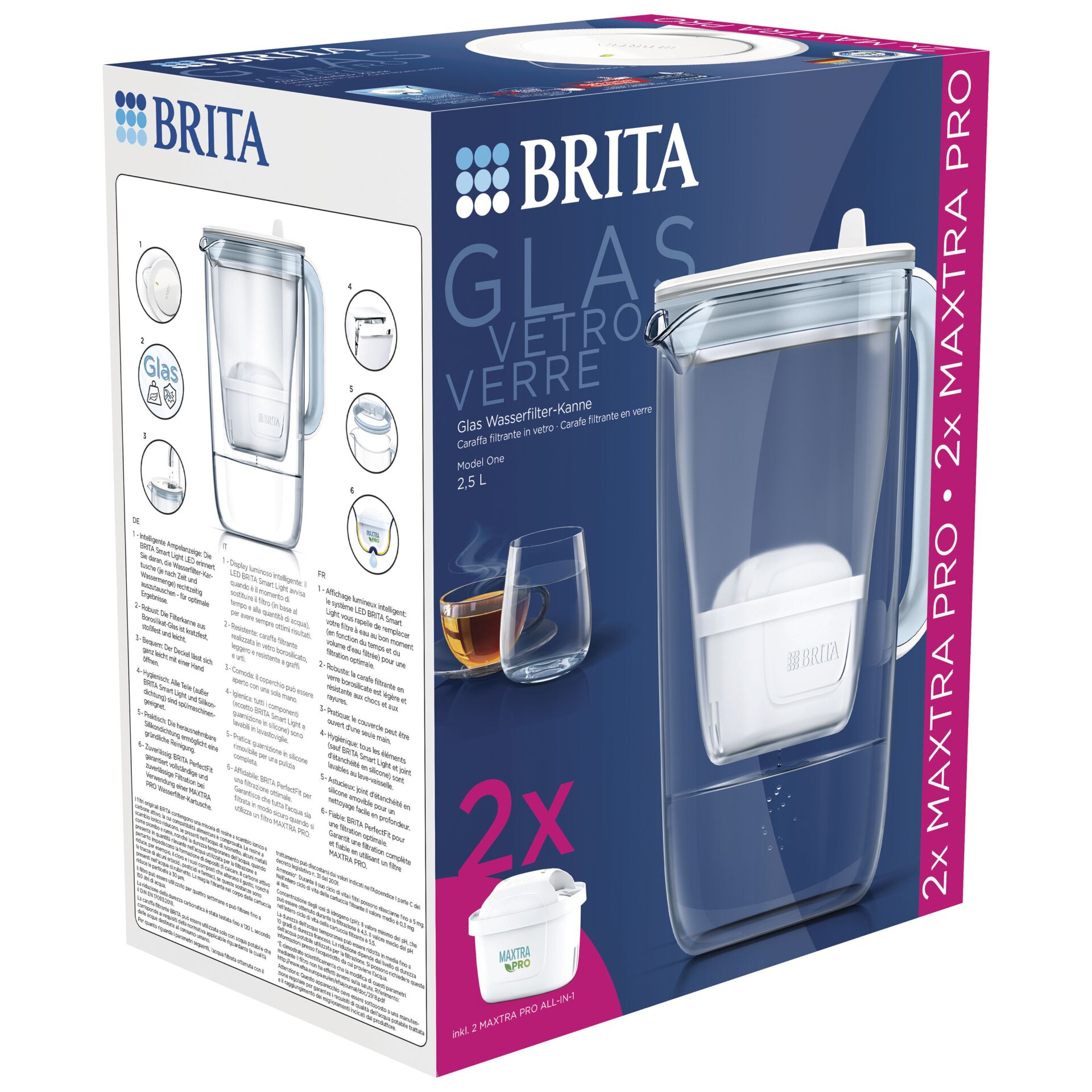 Brita Glas Kanne Model One inkl. 2 MAXTRA PRO