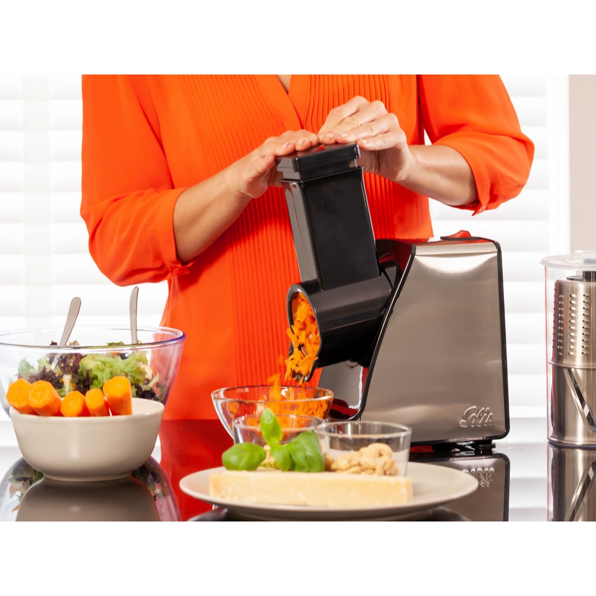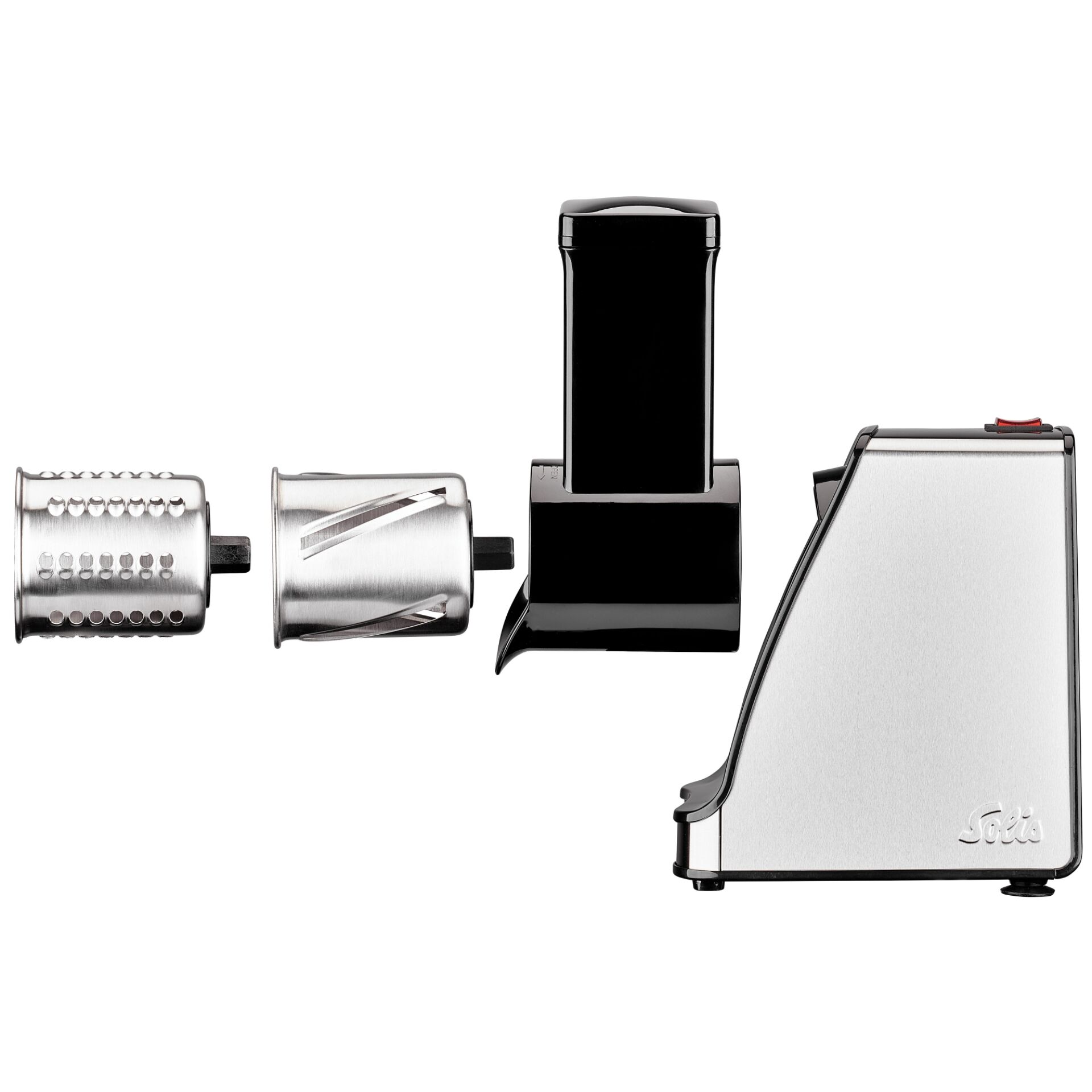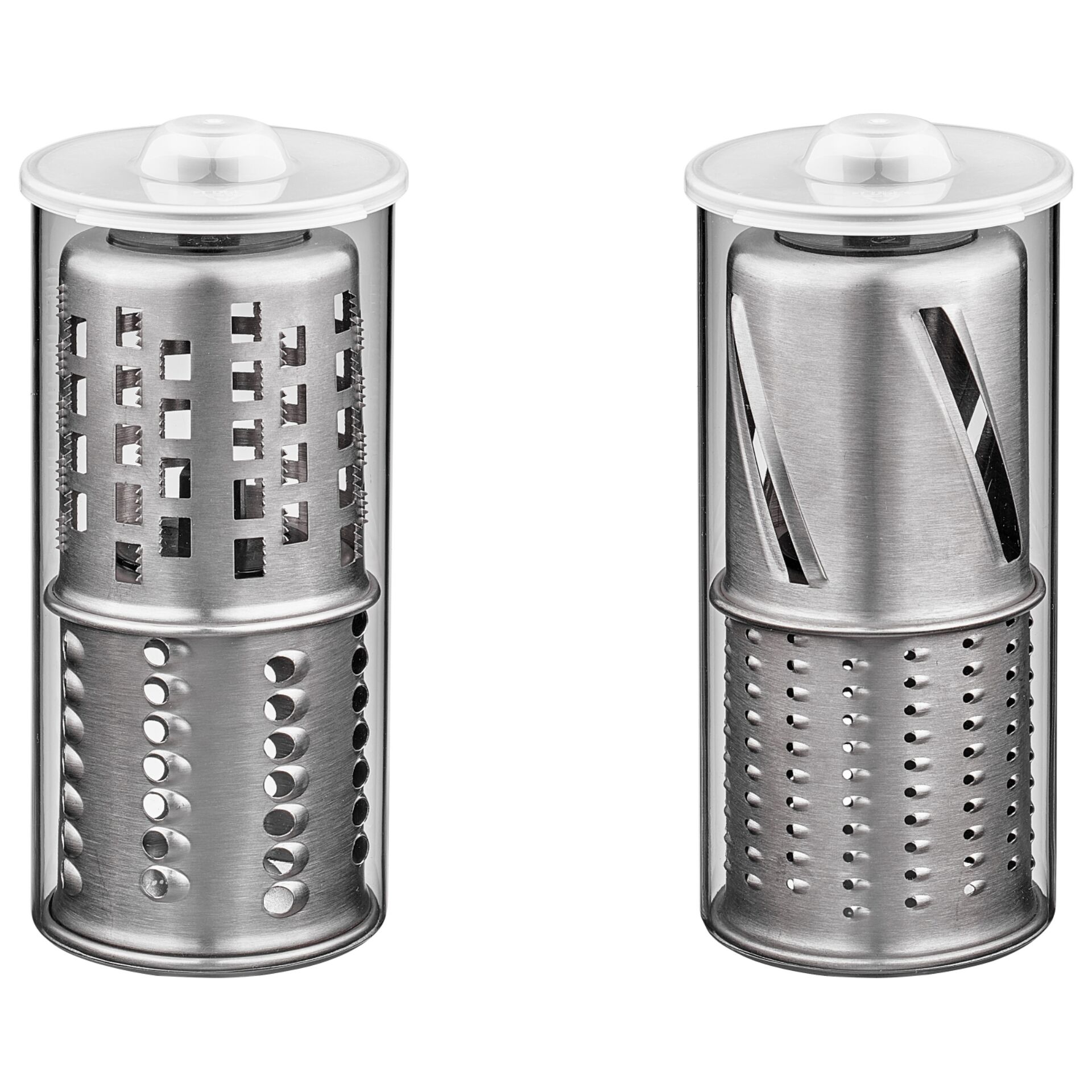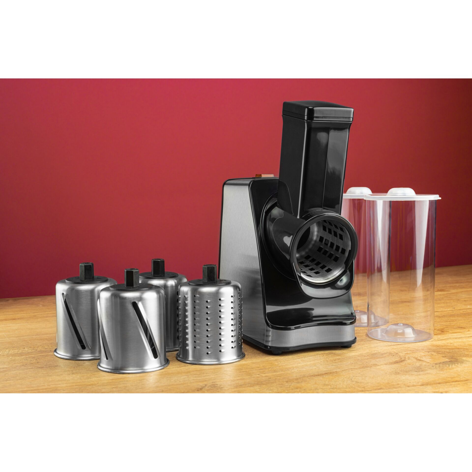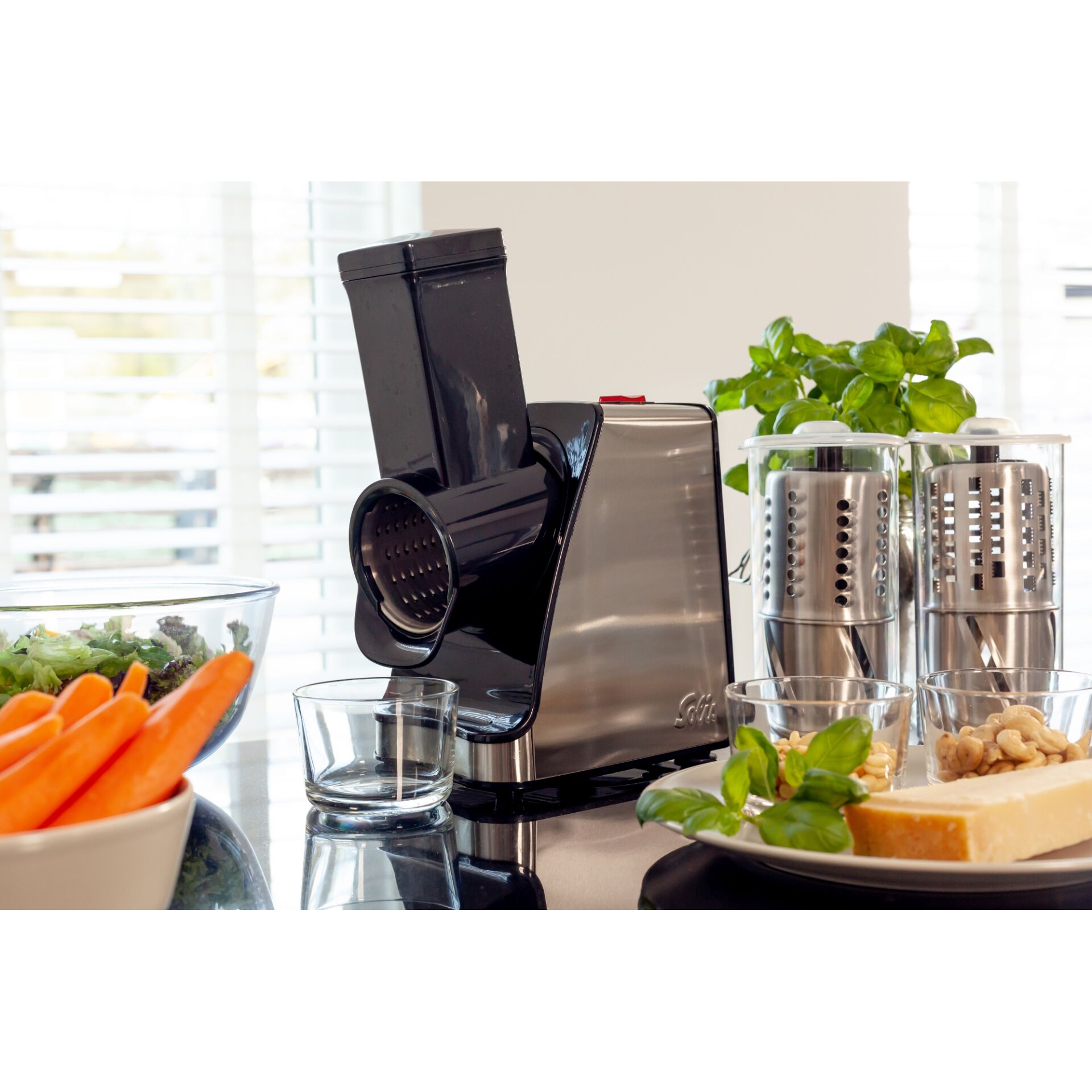 Zum schnellen reiben, raspeln, schneiden, mahlen und vielem mehr von Äpfeln, Karotten, Sellerie, Käse, Radieschen, Schokolade, Salzkartoffeln oder Knoblauch und weiteren Lebensmitteln.
