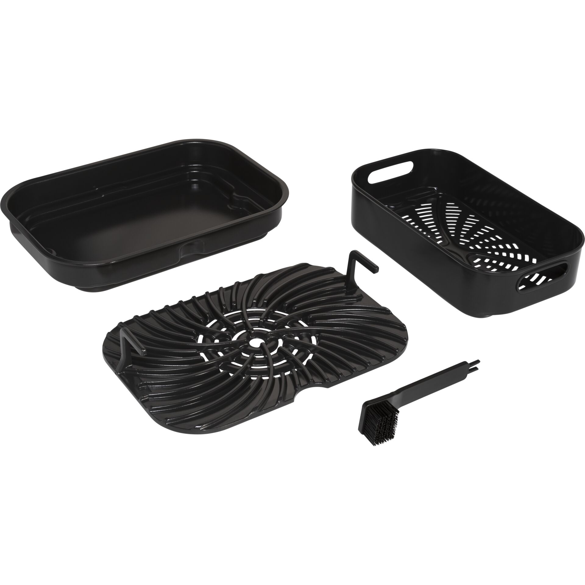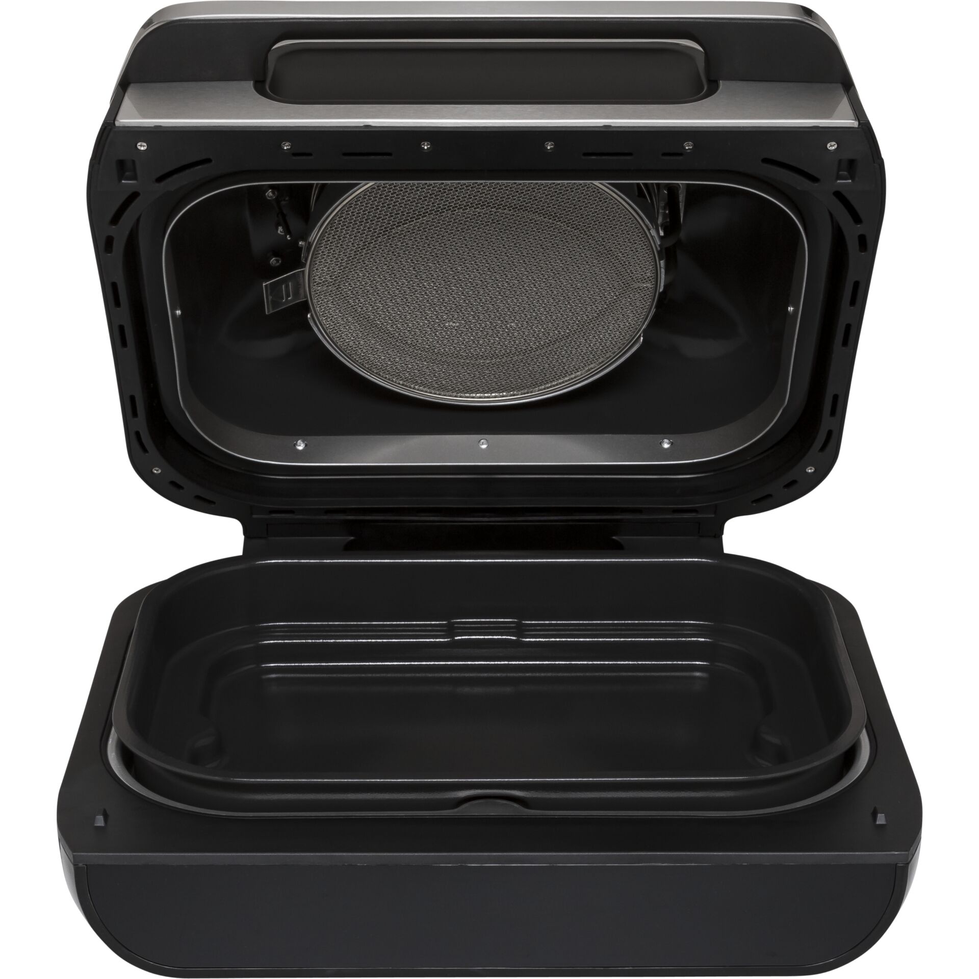 - 6 verschiedene Zubereitungsfunktionen (Grillen, Backen, Aufwärmen, Braten, Dörren und Heißluft-Frittieren)