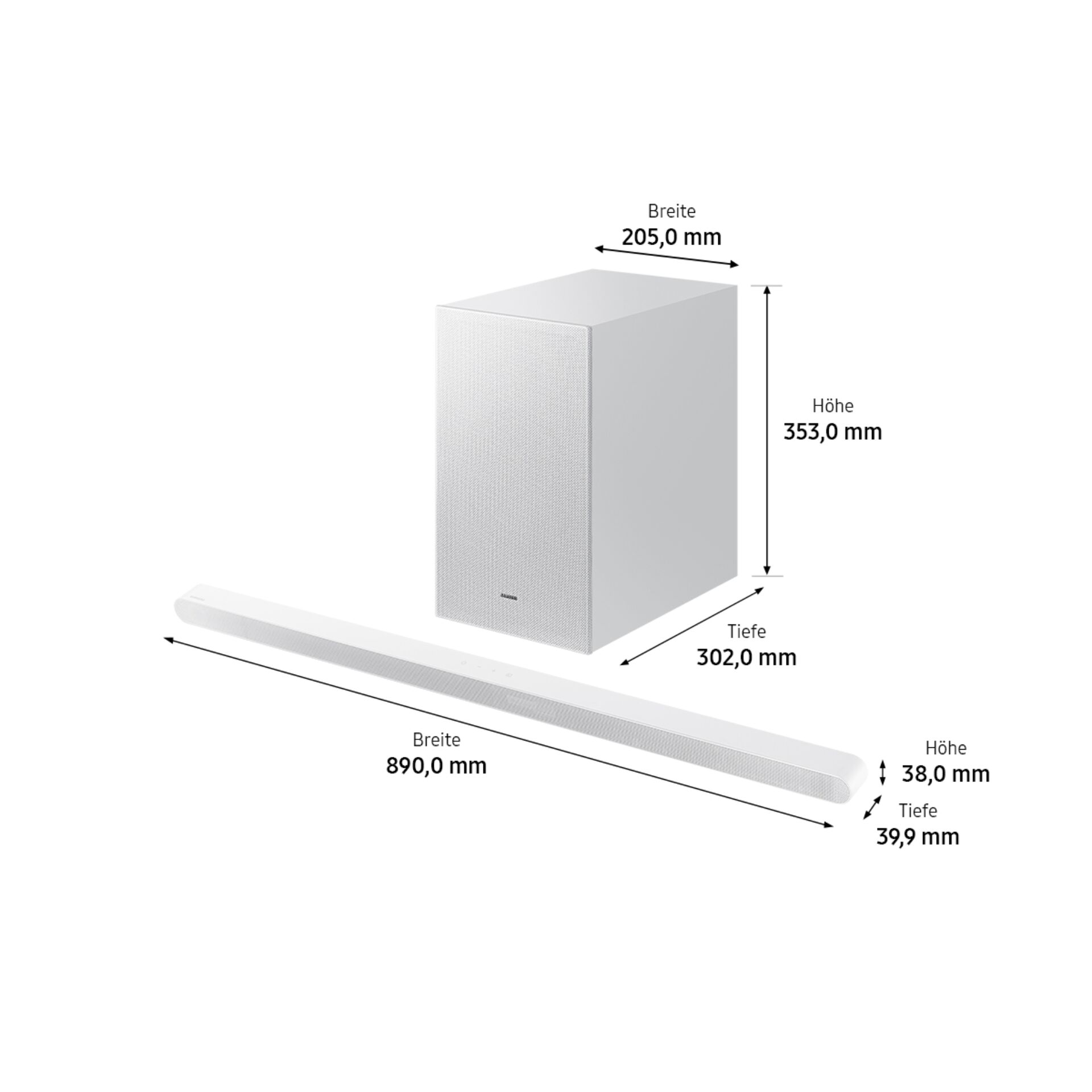 - Maße Subwoofer (B x H x T): 205 x 353 x 302 mm