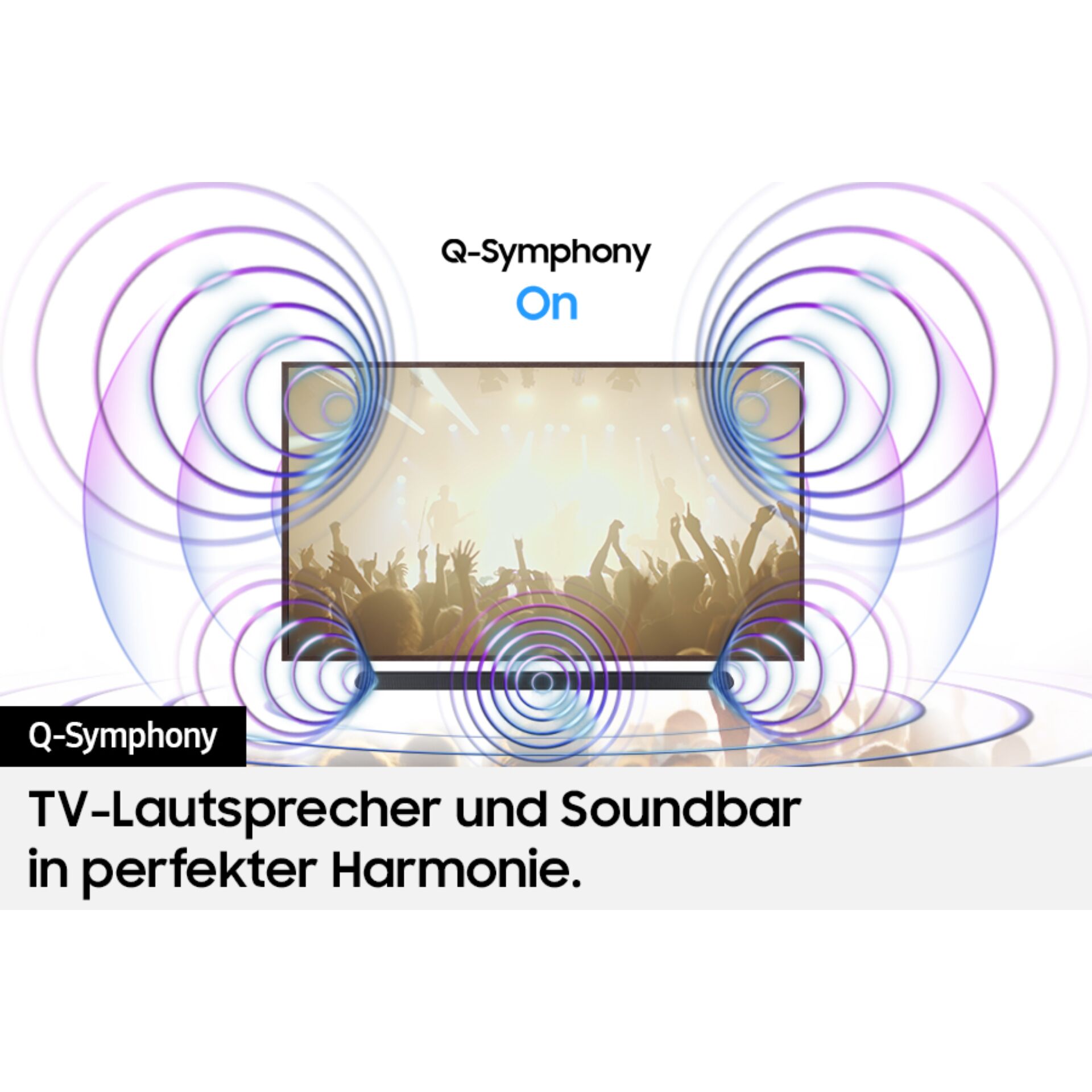 - Mit Q-Symphony die Lautsprecher des TVs und der Soundbar perfekt aufeinander abstimmen