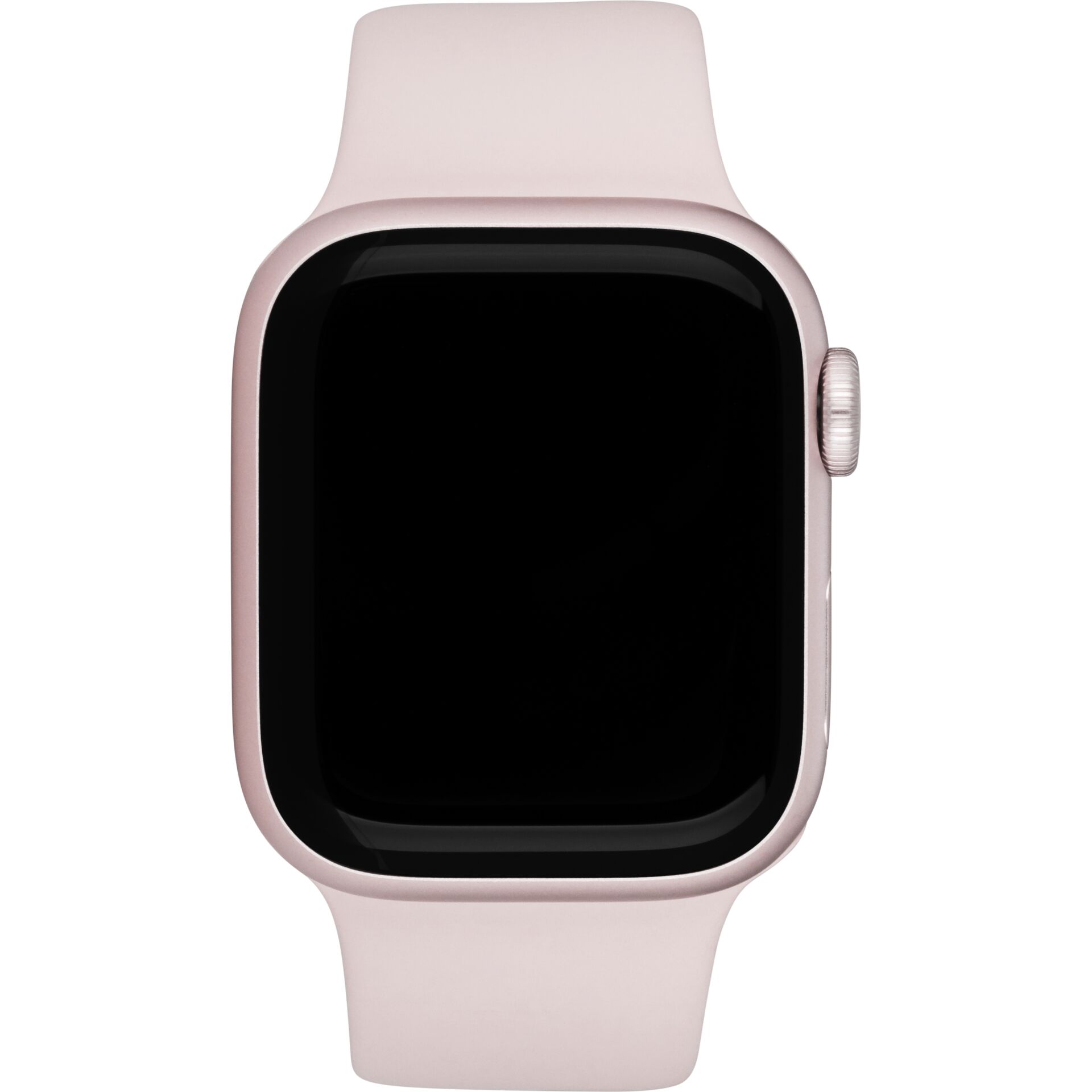 Die Apple Watch Series 9 hat ein Gehäuse aus Aluminium, das leicht, robust und korrosionsbeständig ist. Das Gehäuse hat eine Größe von 45 mm und passt zu jedem Handgelenk. Das Sportarmband ist aus Flouroelastomer gefertigt, das weich, bequem und wasserfest ist. Das Armband hat eine Farbe von Rosé, die zu jedem Outfit passt.