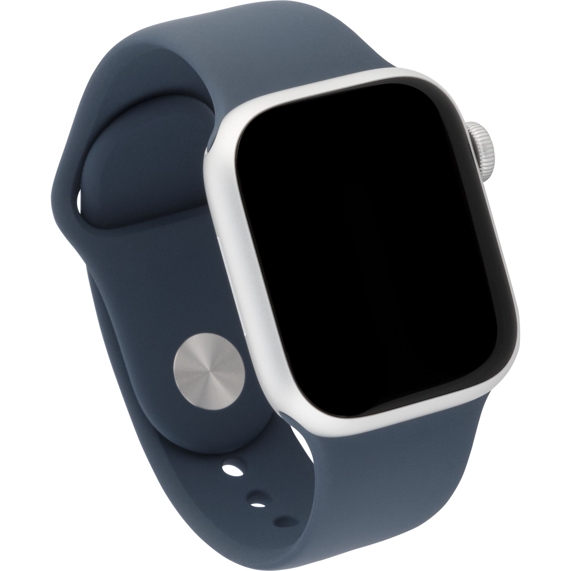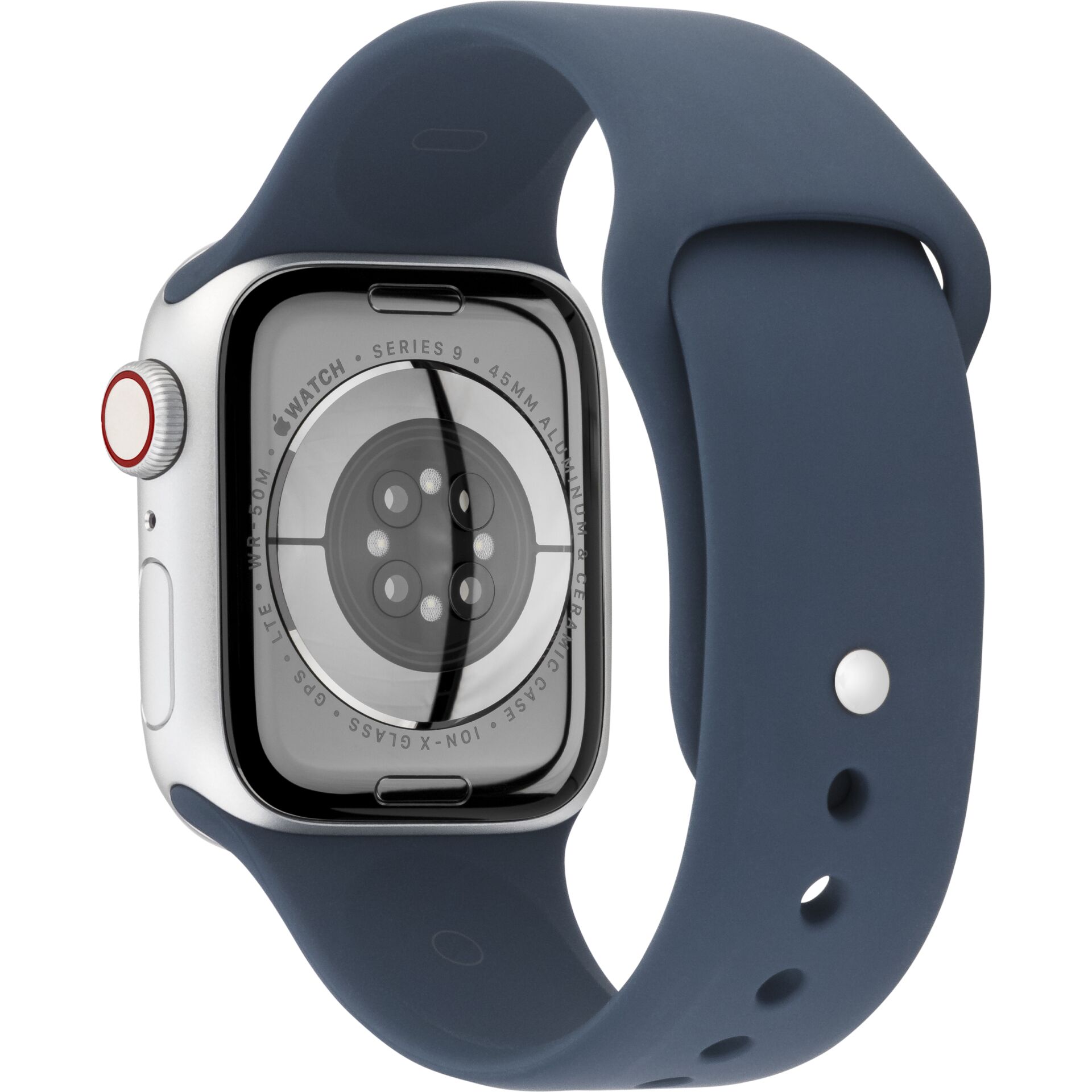 Apple Watch Series 9 GPS + Cellular, 45 mm, Aluminiumgehäuse Silber, Sportarmband Sturmblau, M/L (150 - 200 mm Umfang)