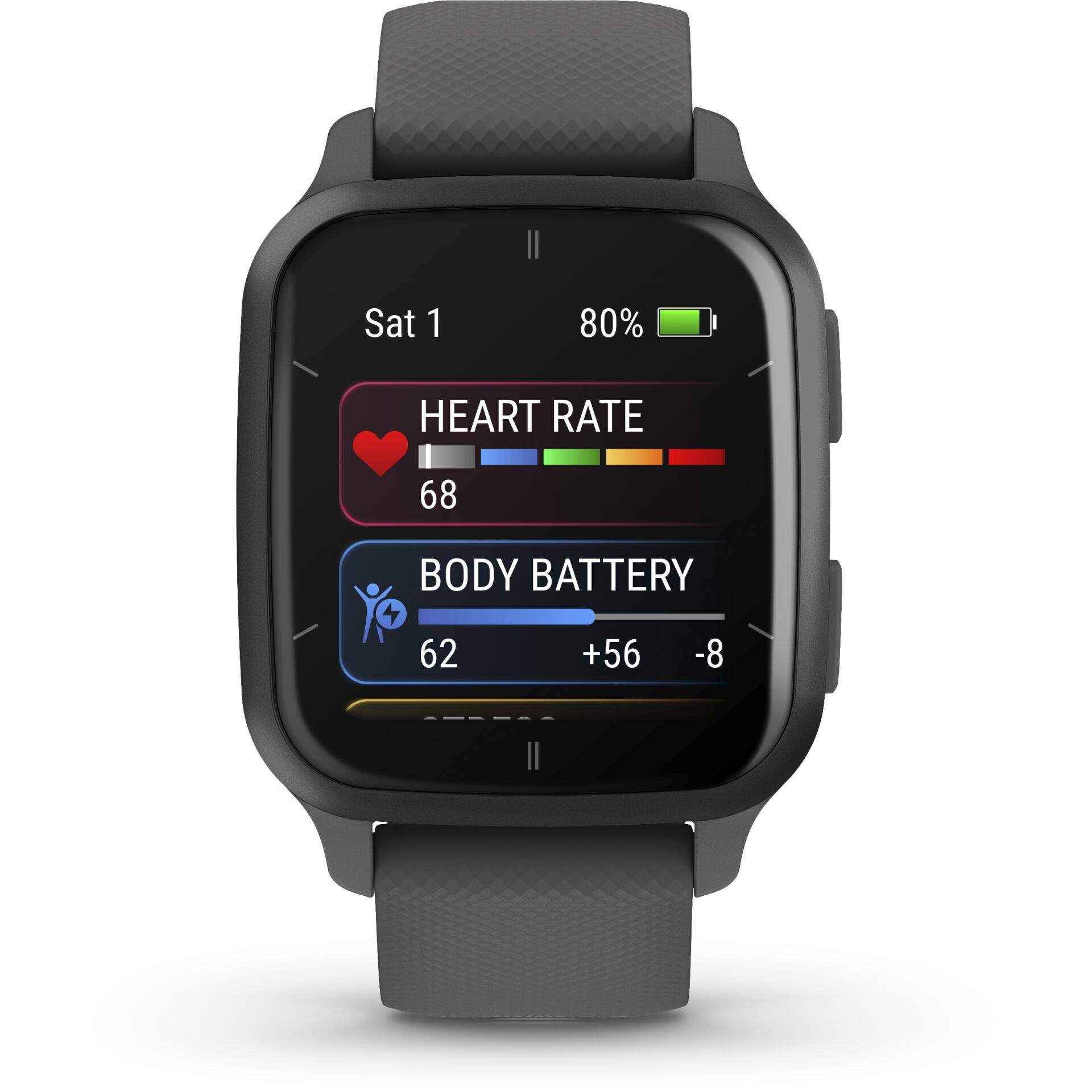 Die Venu Sq 2 zählt Schritte, Intensitätsminuten, verbrannte Kalorien und mehr, während du unterwegs bist. Synchronisiere diese Daten sogar über die Garmin Connect App mit mehreren Garmin Smartwatches.