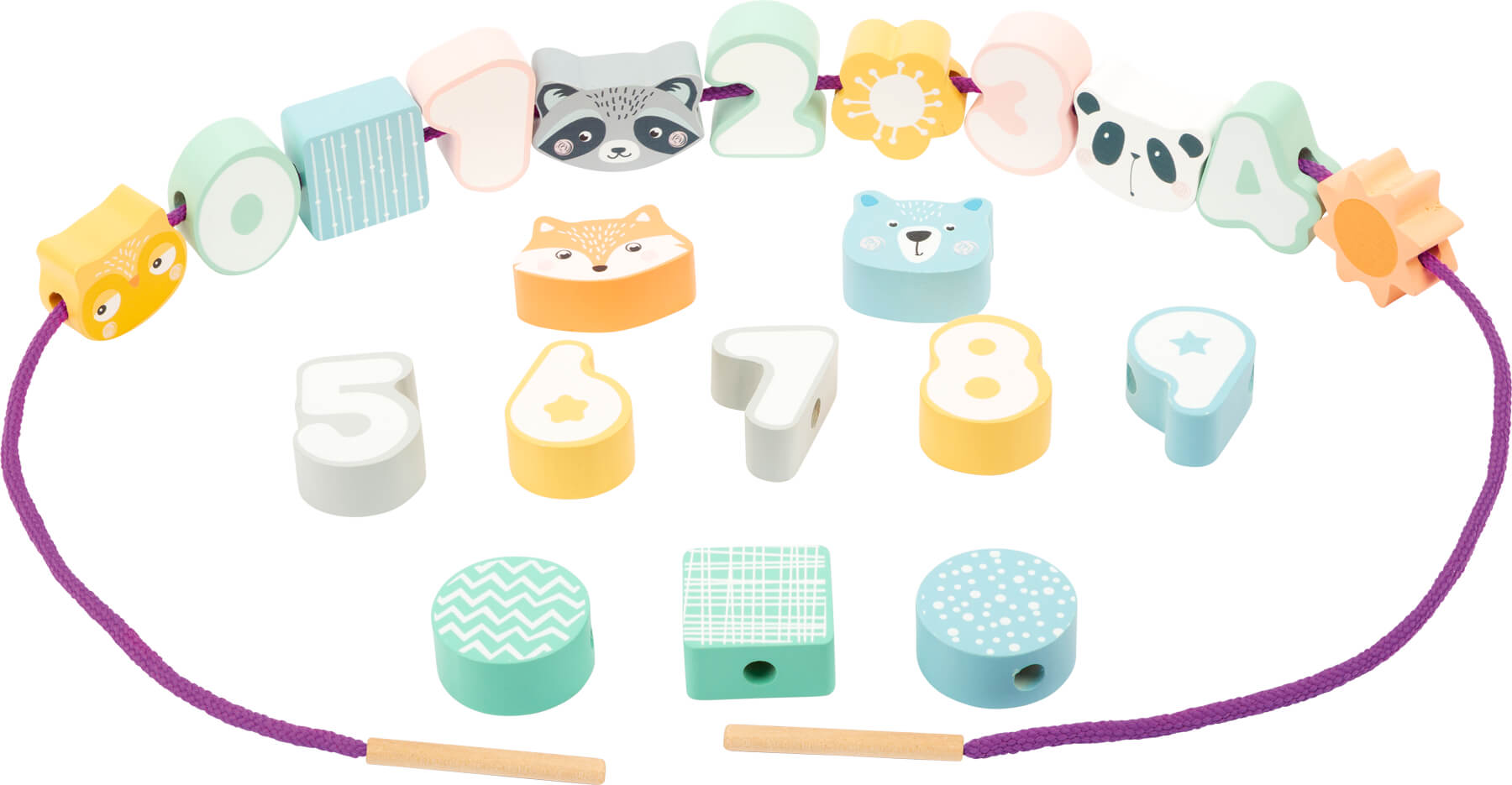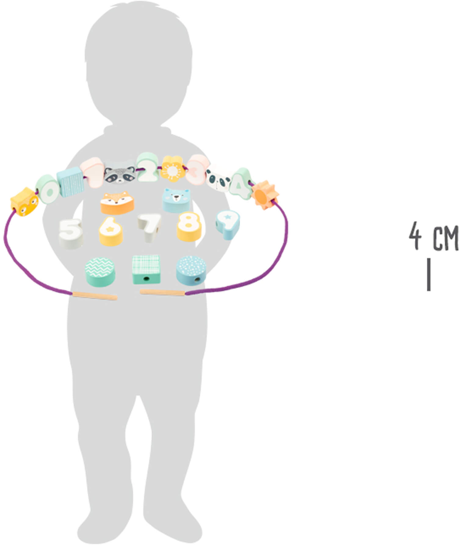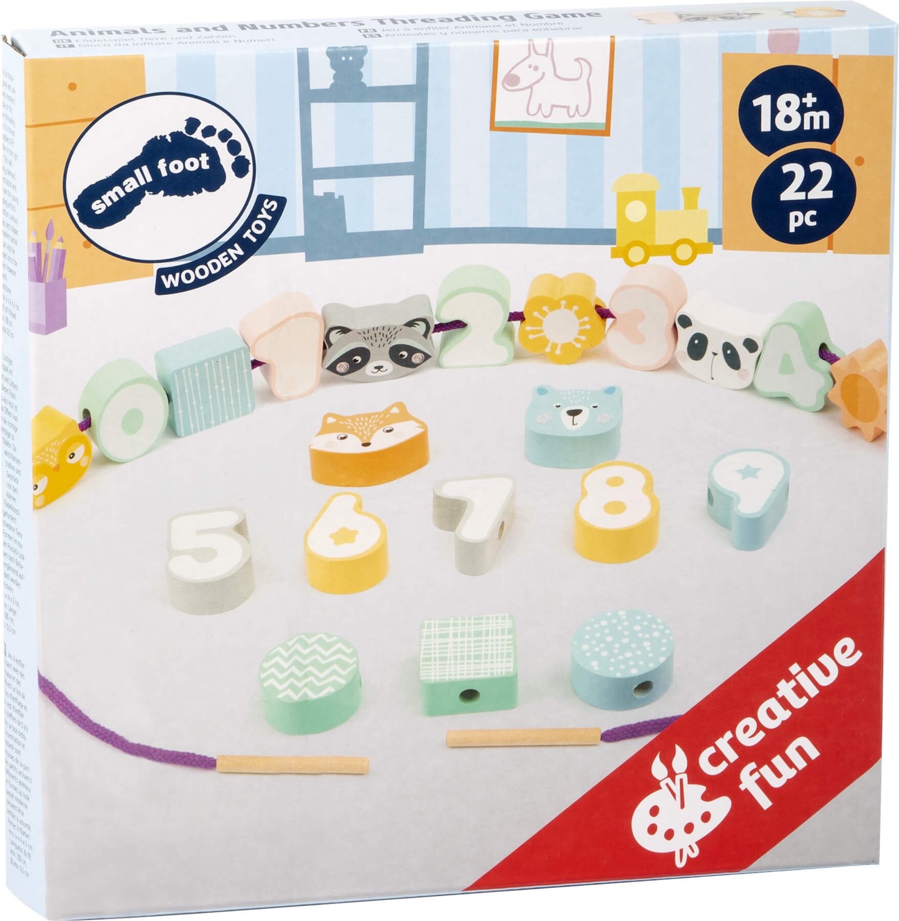 Lustiges Fädelspiel mit Tieren und Zahlen! Ziel dieses Fädelspiels aus Holz ist es, die Ziffern von 0-9 in die richtige Reihenfolge zu fädeln. Da wird Konzentration und Geschick von den kleinen Fädelkünstlern gefordert! Verschiedene Tiere und Formen im modernen Pastell-Look können nach Belieben ergänzend aufgefädelt werden. Ein schönes Konzentrationsspiel im modernen Look mit garantiertem Spielspaß.