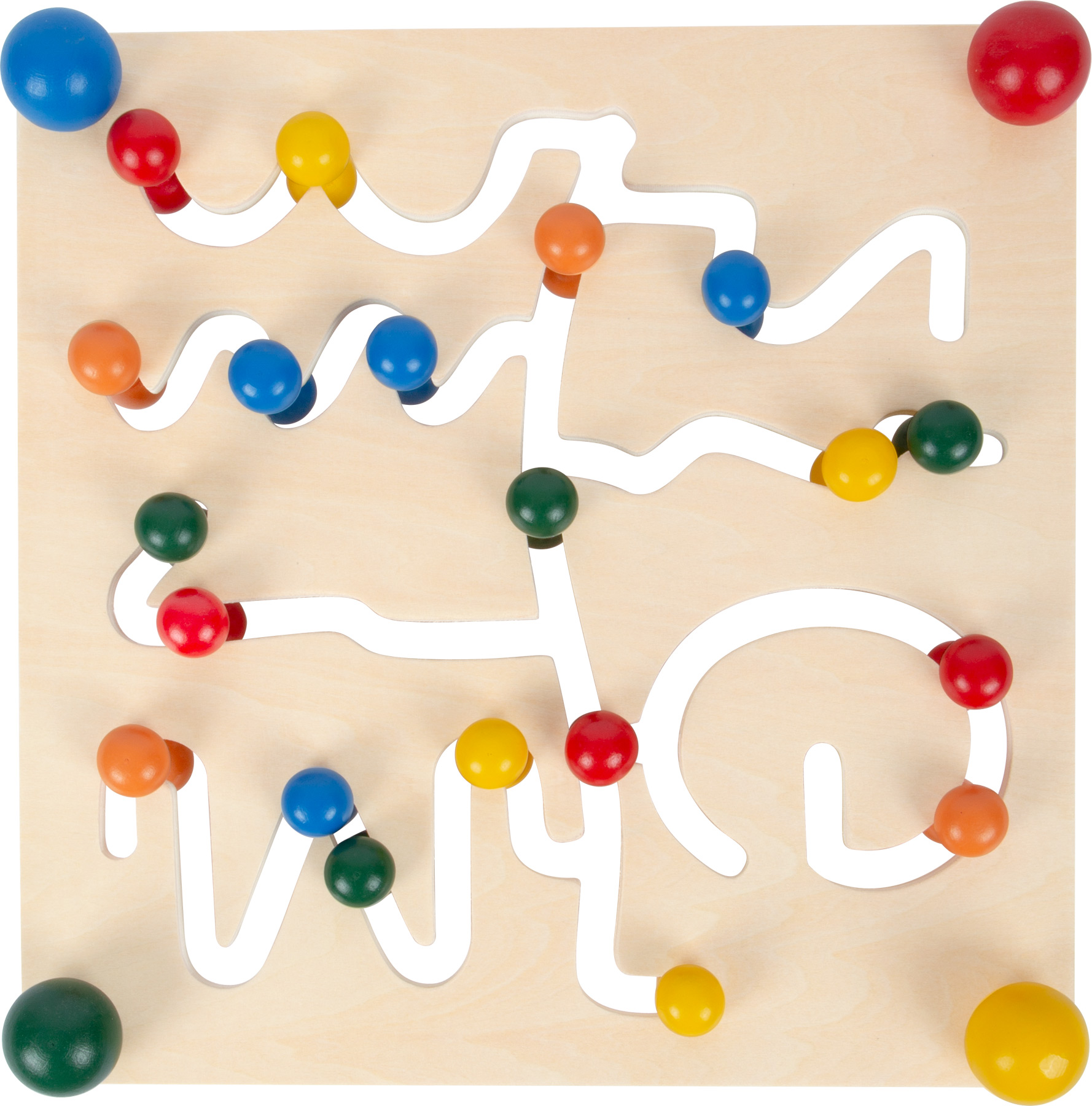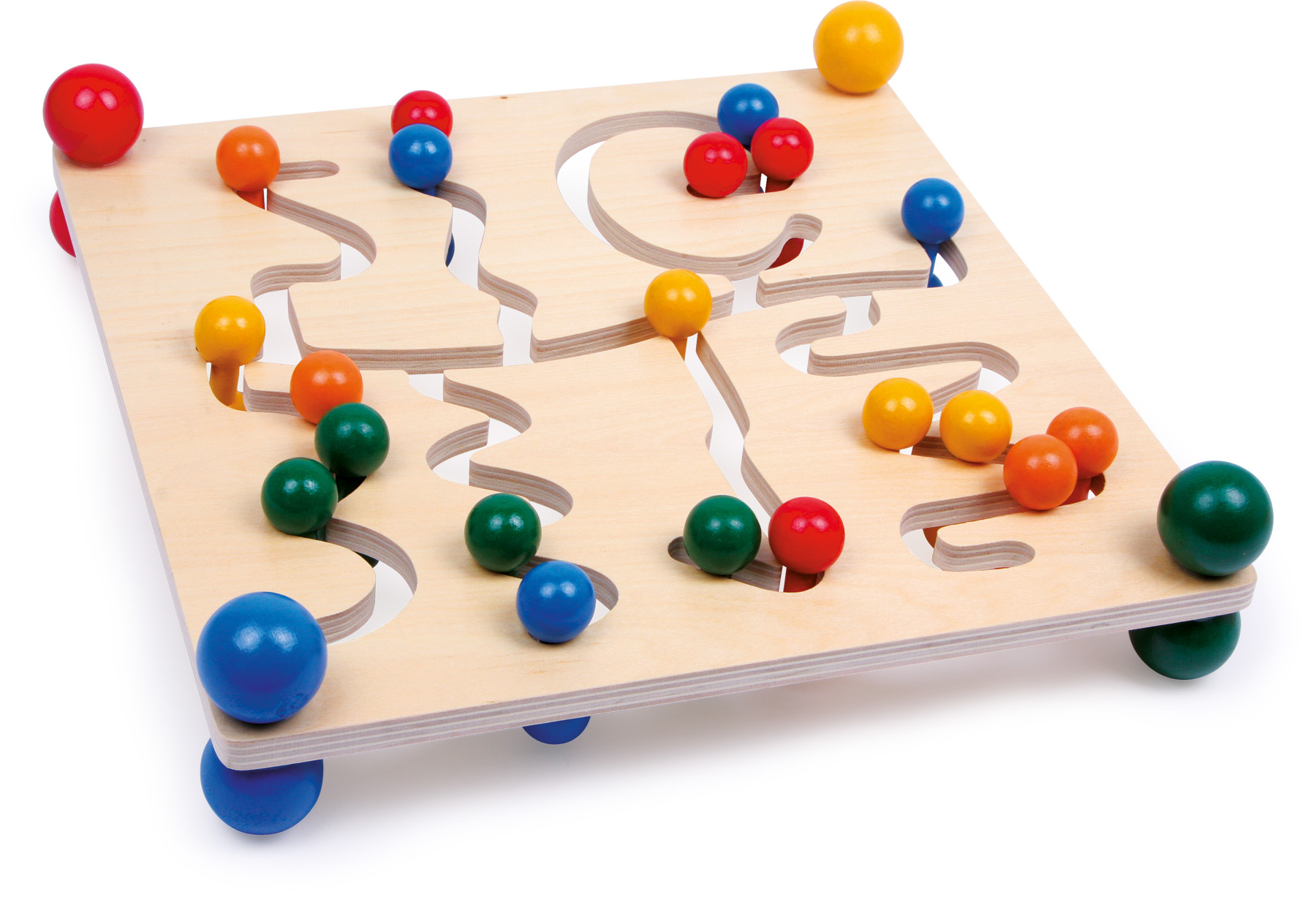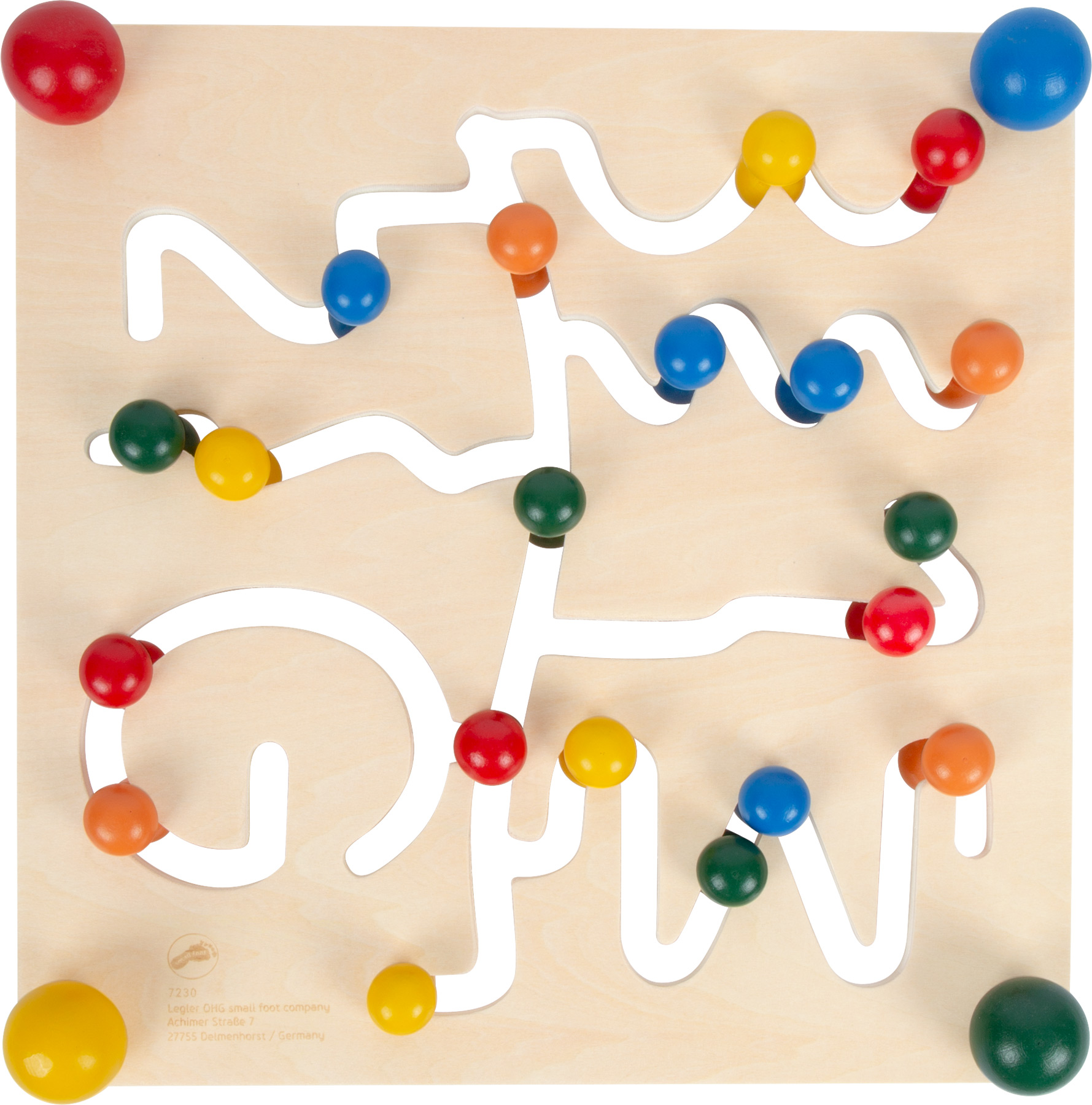 Wer schafft es, richtig zu sortieren? Bei diesem Motorikbrett aus stabilem Schichtholz kommt es darauf an, die bunt lackierten Kugeln durch das verzweigte Labyrinth zu schieben. Dabei wird nicht nur das Farbverständnis gefördert, sondern gleichzeitig auch die Feinmotorik. Dieses Motorikspielzeug bietet langanhaltenden Spielspaß und sollte in keinem Kinderzimmer fehlen.