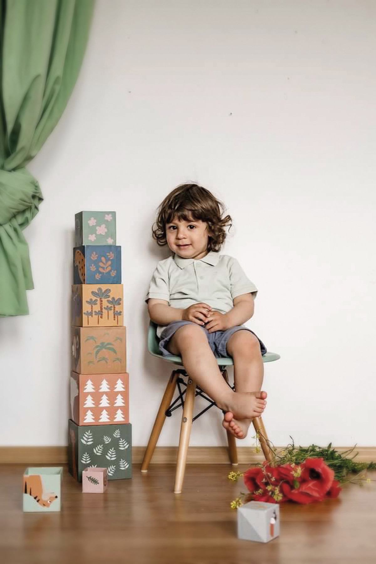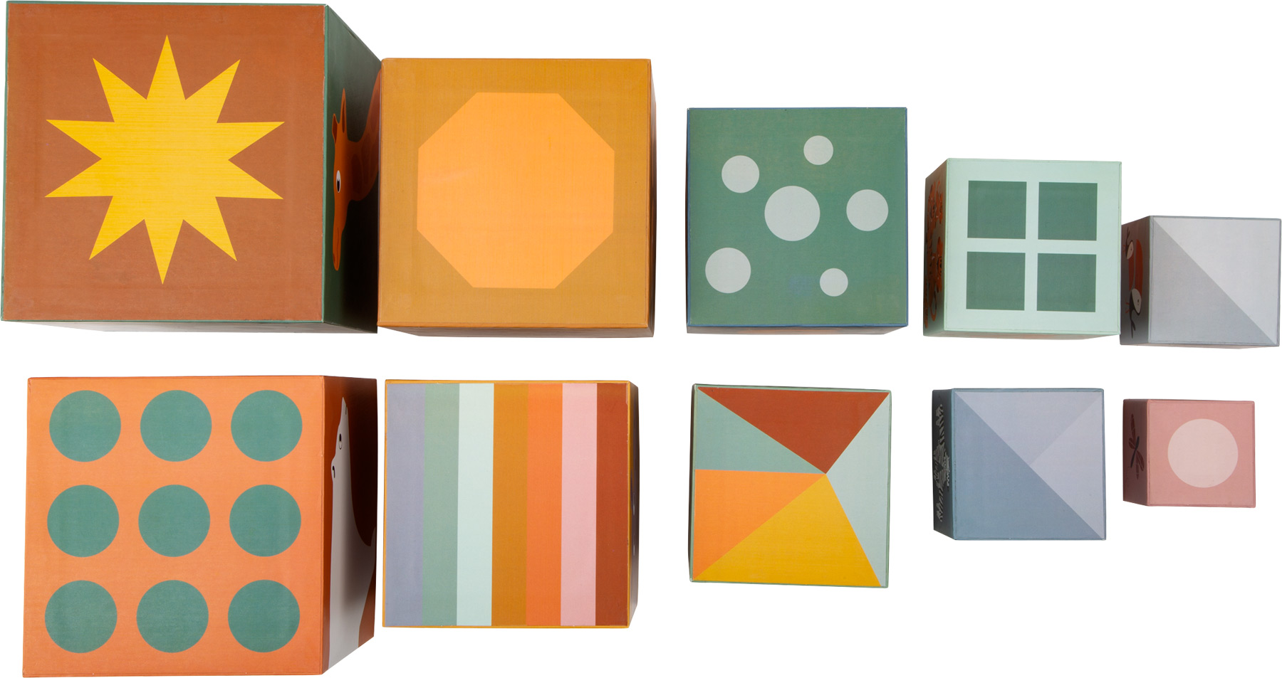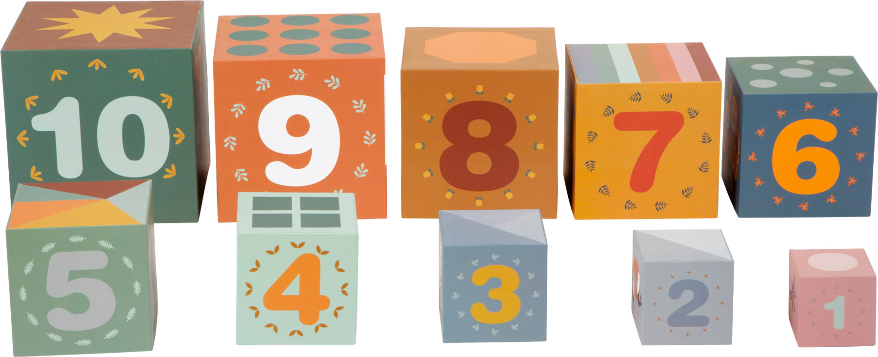 Tierischer Stapel-Spaß! Mit diesen zehn Stapelwürfeln in modernem, kindgerechtem Safari-Look können kleine Baumeister ihre Stapel-Künste unter Beweis stellen. Die Stapelwürfel aus stabiler Pappe sind mit niedlichen Motiven aus der Tierwelt sowie mit den Zahlen von 1-10 versehen. Die Anzahl der abgebildeten Tiere auf einem Würfel entspricht dabei der Zahl auf der Würfelrückseite. So entwickeln Kinder spielerisch ein erstes Zahlenverständnis und lernen verschiedene Tiere kennen. Wer bringt die Würfel in die richtige Reihenfolge? Beim Sortieren und Stapeln der Safari-Würfel trainieren die Kleinen Motorik, Konzentration und Geschicklichkeit, während sie gleichzeitig ein Verständnis für Farben und Größen entwickeln. Nach dem Spielen lassen sich die Würfel ganz einfach ineinander stecken und platzsparend im größten Würfel verstauen.