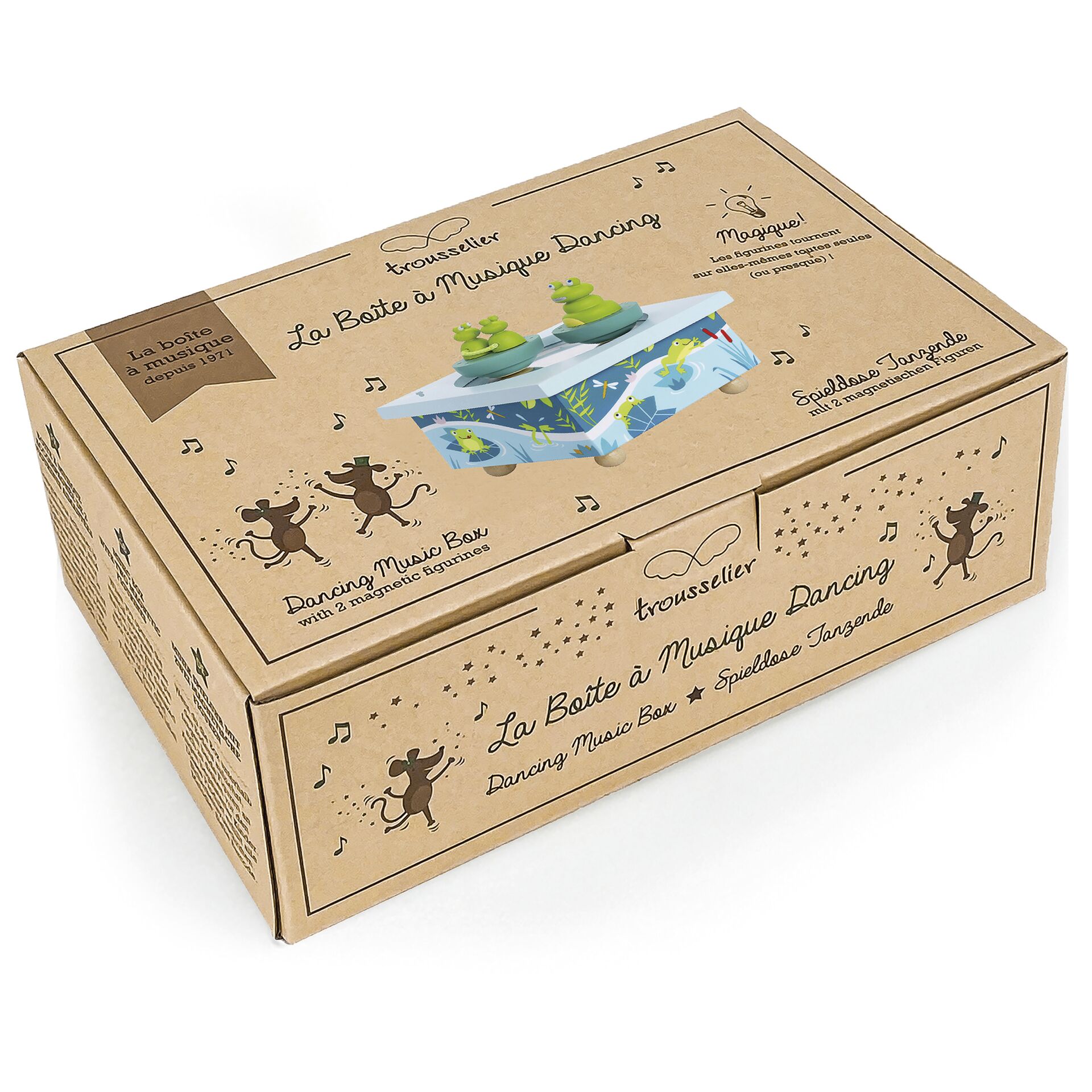 Diese Spieluhr beinhaltet 2 magnetische Figuren, welche sich auf der Tanzfläche drehen. Perfekt um dem Kind das Einschlafen zu erleichtern. Dieses Spieldosen-Set ist besonders gut zur Dekoration des Kinderzimmers geeignet. Die beiden Figuren sind abnehmbar: Das Kind kann mit ihnen spielen. Die Figuren drehen sich zum Klang der Musik.