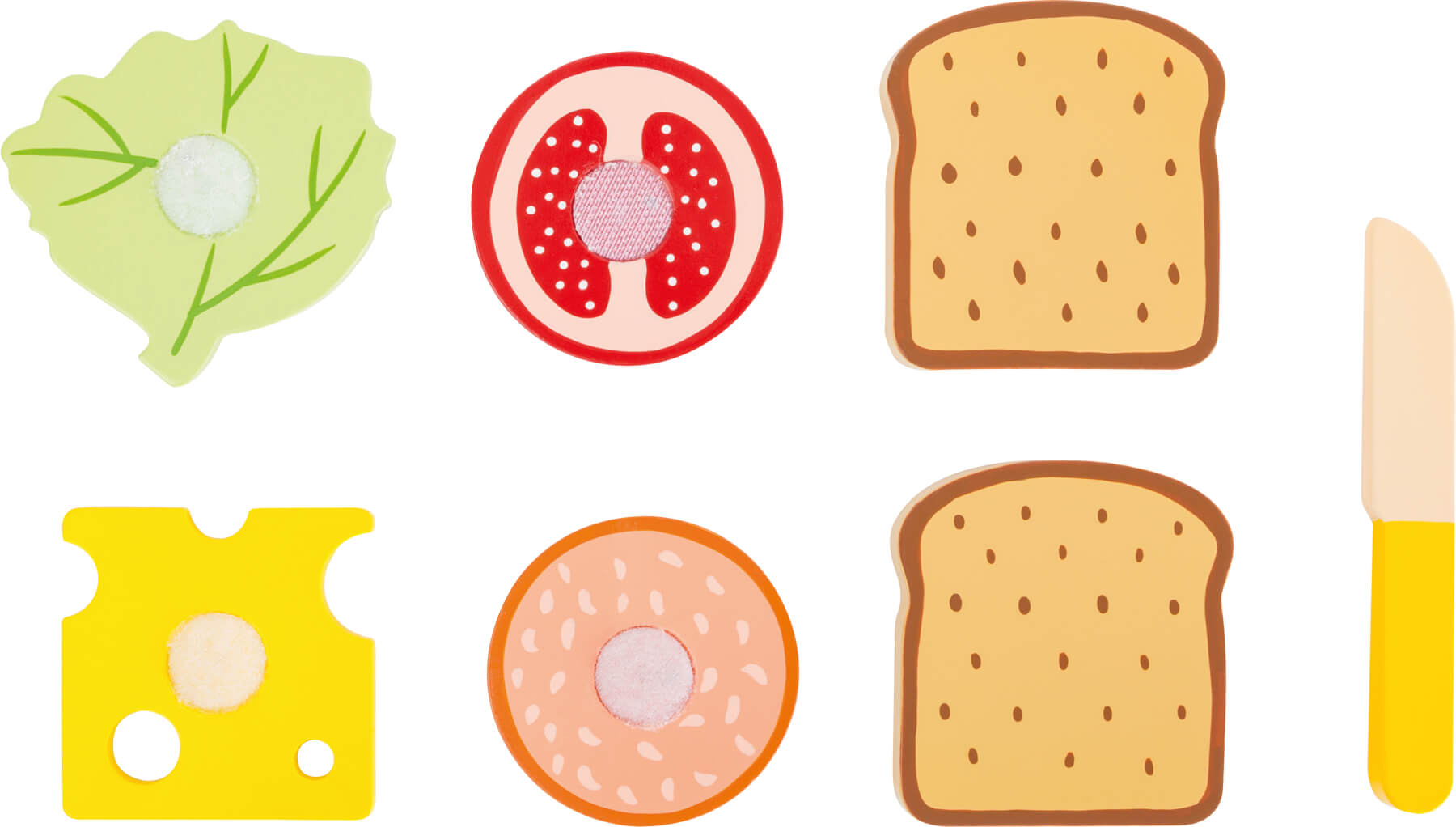 Was für eine Brotzeit! Mit diesen Zutaten aus FSC® 100%-zertifiziertem Holz können sich kleine Picknicker eine richtige Brotzeit zusammenstellen. Durch den Klettverschluss werden die Teile zusammengehalten und können mit dem Holzmesser getrennt werden. Dieses Set eignet sich besonders gut als Erweiterung in der Kinder-Küchenwelt. So lernen die Kleinen ganz spielerisch das Anrichten und Zubereiten von Snacks. Wer hat jetzt Hunger bekommen?