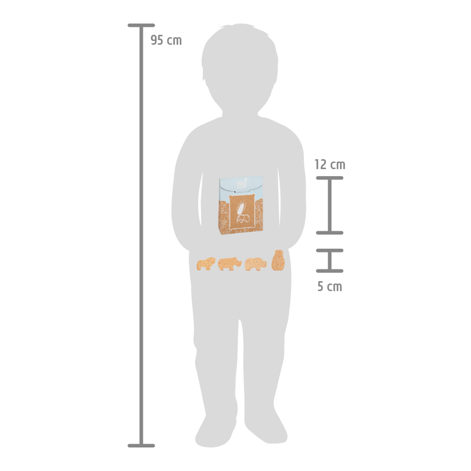 Savannentiere fürs Kekssortiment im Kaufladen! Diese 8 robusten Kekse aus Vollholz in Tierform sind eine Bereicherung für das Süßwarensortiment im Kaufladen! In der wiederverschließbaren Faltschachtel aus Naturkarton machen die beliebten Kinderkekse im Regal garantiert eine gute Figur. Dank einfacher Abbildung auf der Packung auch für kleine Kinder, die noch nicht lesen können, leicht zu verstehen. Praktisch und lehrreich: Auf der Rückseite der Kekspackung befindet sich eine Inhaltsangabe in Bildern. Das natürliche, realitätsnahe Aussehen der Tierkekse (2 Löwen, 2 Affen, 2 Nashörner, 2 Elefanten) machen sie zum Renner im fantasievollen Rollenspiel in Kaufladen und Kinderküche! Zusammen mit weiteren Spiellebensmitteln der Produktlinie „fresh“ ist langlebiger Spielspaß mit Spiellebensmitteln aus Holz garantiert.