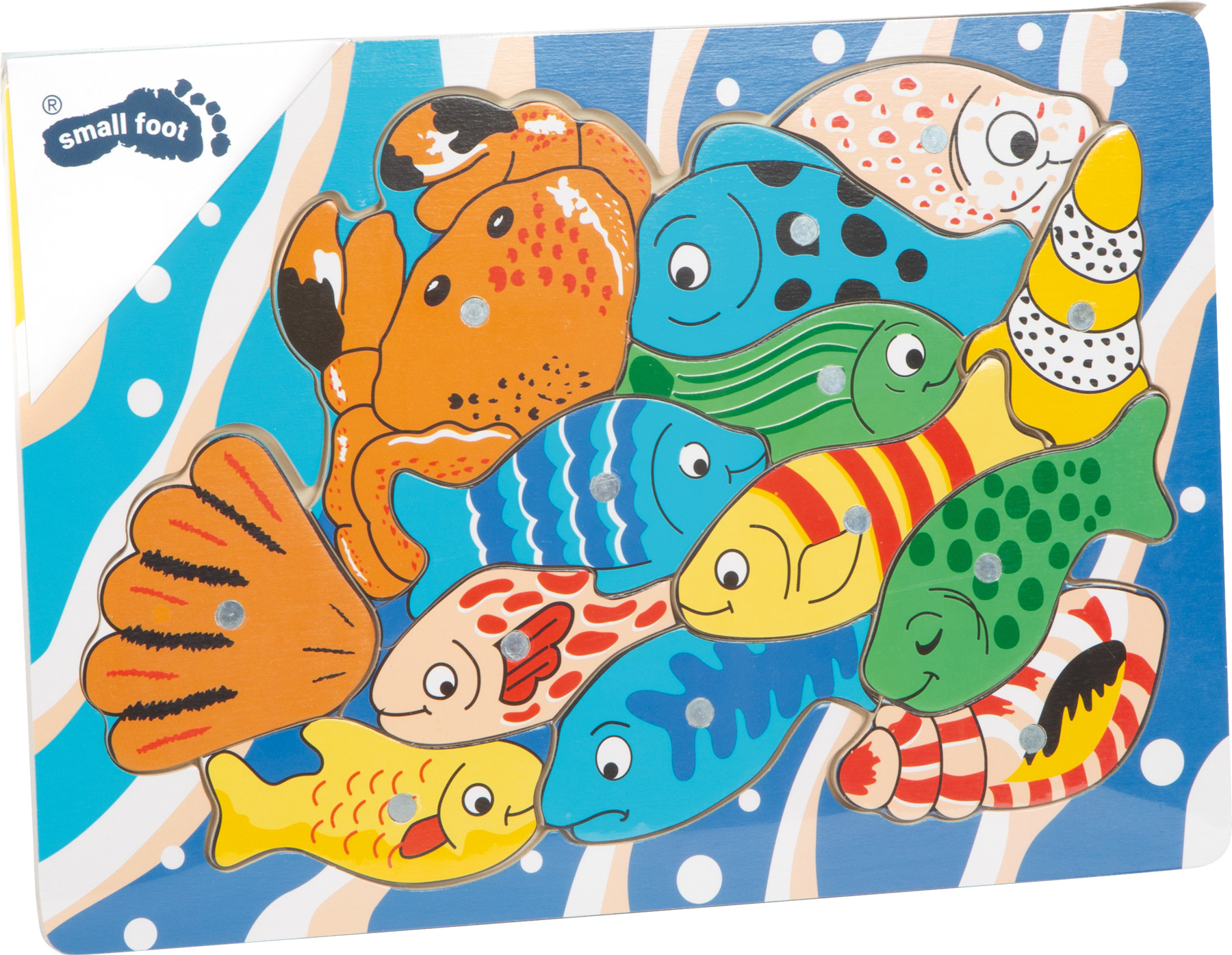 Dieses Angel-Spiel ist ein tolles Setzpuzzle! Hat man alle Meeresbewohner aus dem Holzrahmen heraus geangelt, lassen sich die einzelnen Holzfische, Muscheln und Krebse nebeneinander wieder zu einem Gesamtbild zusammensetzen. Die Hand-/Augenkoordination und das Erinnerungsvermögen werden somit gleichermaßen trainiert. Eine tolle Kombination aus Setzpuzzle und Angelspiel!